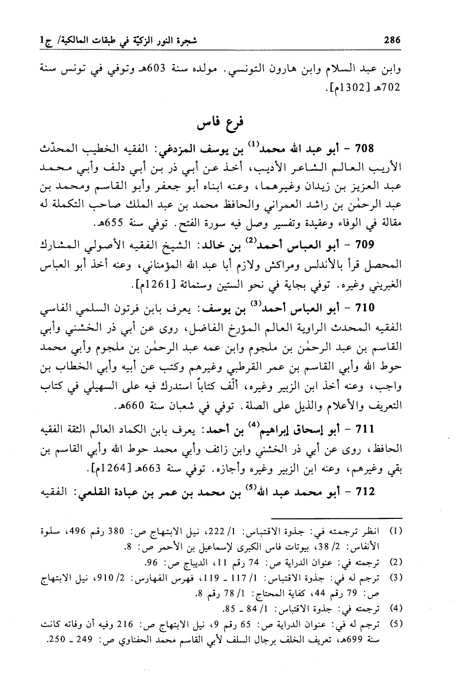 كتاب شجرة النور الزكية في طبقات المالكية (اسم الجزء: 1)