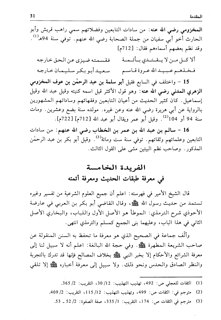 الفريدة الخامسة في معرفة طبقات الحديث ومعرفة أئمته