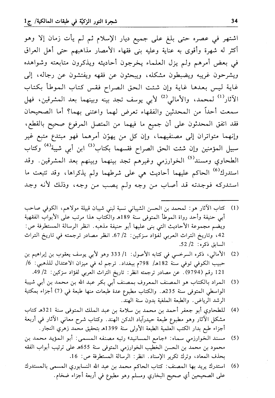 كتاب شجرة النور الزكية في طبقات المالكية (اسم الجزء: 1)