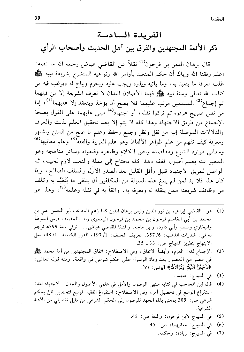 الفريدة السادسة ذكر الأئمة المجتهدين والفرق بين أهل الحديث وأصحاب الرأي