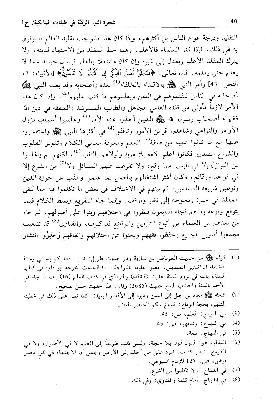 كتاب شجرة النور الزكية في طبقات المالكية (اسم الجزء: 1)