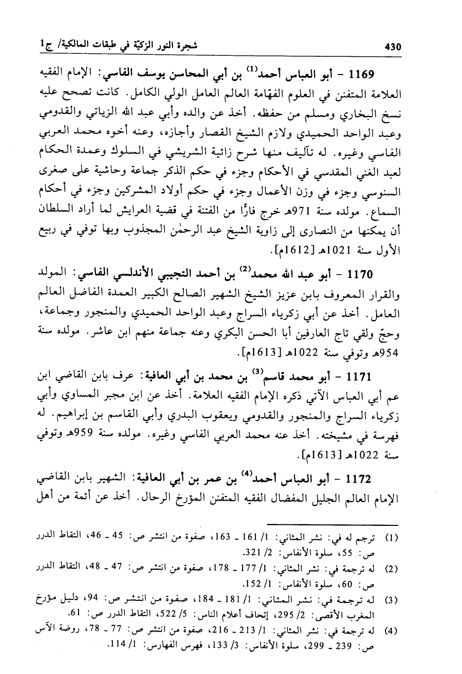 1172 - أبو العباس أحمد بن عمر بن أبي العافية: الشهير بابن القاضي الإِمام العالم الجليل المفضال الفقيه المتفنن المؤرخ الرحال. أخذ عن أئمة من أهل
