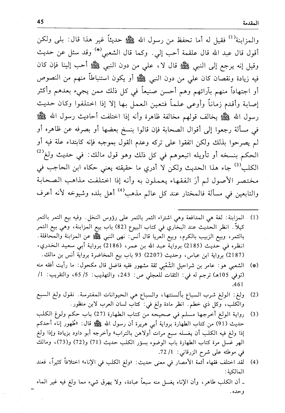 والمزابنة فقيل له أما تحفظ من رسول الله - صلى الله عليه وسلم - حديثاً غير هذا قال: بلى ولكن أقول قال عبد الله قال علقمة أحب إلى. وكما قال الشعبي وقد سئل عن حديث وقيل إنه يرجع إلى النبي - صلى الله عليه وسلم - قال لا، علي من دون النبي - صلى الله عليه وسلم - أحب إلينا فإن كان فيه زيادة ونقصان كان علي من دون النبي - صلى الله عليه وسلم - أو يكون استنباطاً منهم من النصوص أو اجتهاداً منهم بآرائهم وهم أحسن صنيعاً في كل ذلك ممن يجيء بعدهم وأكثر إصابة وأقدم زماناً وأوعى علماً فتعين العمل بها إلا إذا اختلفوا وكان حديث رسول الله -صلى الله عليه وسلم - يخالف قولهم مخالفة ظاهرة وأنه إذا اختلفت أحاديث رسول الله - صلى الله عليه وسلم - في مسألة رجعوا إلى أقوال الصحابة فإن قالوا بنسخ بعضها أو بصرفه عن ظاهره أو لم يصرحوا بذلك ولكن اتفقوا على تركه وعدم القول بموجبه فإنه كابتداء علة فيه أو الحكم بنسخه أو تأويله اتبعوهم في كل ذلك وهو قول مالك: في حديث ولغ الكلب جاء هذا الحديث ولكن لا أدري ما حقيقته يعني حكاه ابن الحاجب في مختصر الأصول لم أرَ الفقهاء يعملون به وأنه إذا اختلفت مذاهب الصحابة والتابعين في مسألة فالمختار عند كل عالم مذهب أهل بلده وشيوخه لأنه أعرف