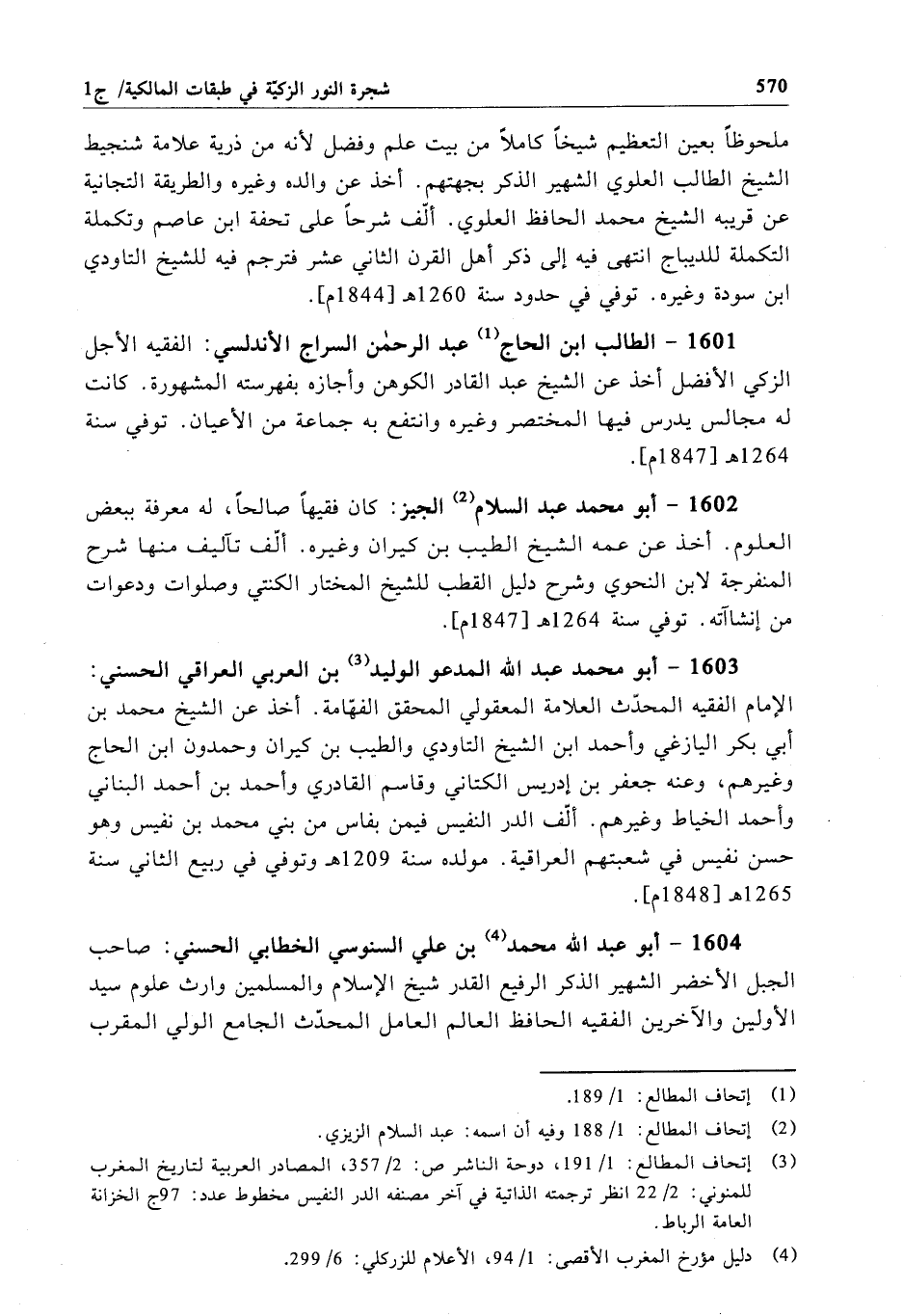 1601 - الطالب ابن الحاج عبد الرحمن السراج الأندلسي: الفقيه الأجل الزكي الأفضل أخذ عن الشيخ عبد القادر الكوهن وأجازه بفهرسته المشهورة. كانت له مجالس يدرس فيها المختصر وغيره وانتفع به جماعة من الأعيان. توفي سنة 1264 هـ[1847 م].