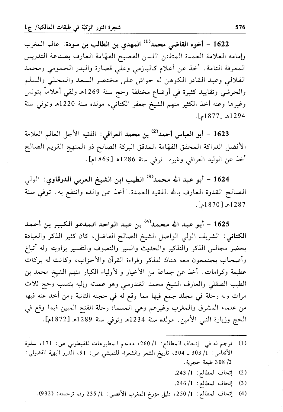 1624 - أبو عبد الله محمَّد الطيب ابن الشيخ العربي الدرقاوي: الولي الصالح القدوة العارف بالله الفقيه العمدة. أخذ عن والده وانتفع به. توفي سنة 1287 هـ[1870م].