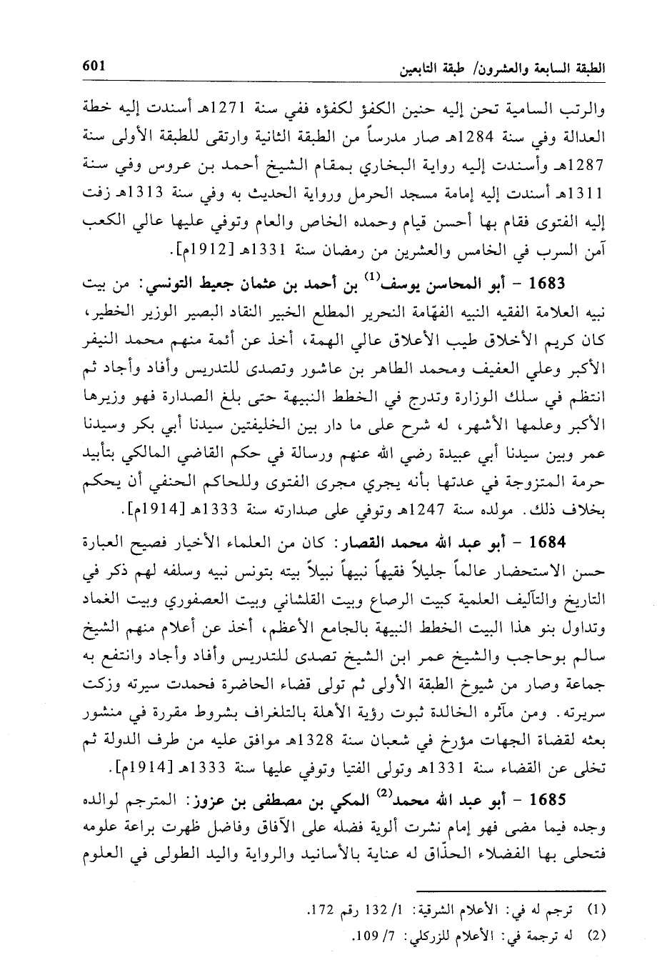 1685 - أبو عبد الله محمَّد المكي بن مصطفى بن عزوز: المترجم لوالده وجده فيما مضى فهو إمام نشرت ألوية فضله على الآفاق وفاضل ظهرت براعة علومه فتحلى بها الفضلاء الحذّاق له عناية بالأسانيد والرواية واليد الطولى في العلوم