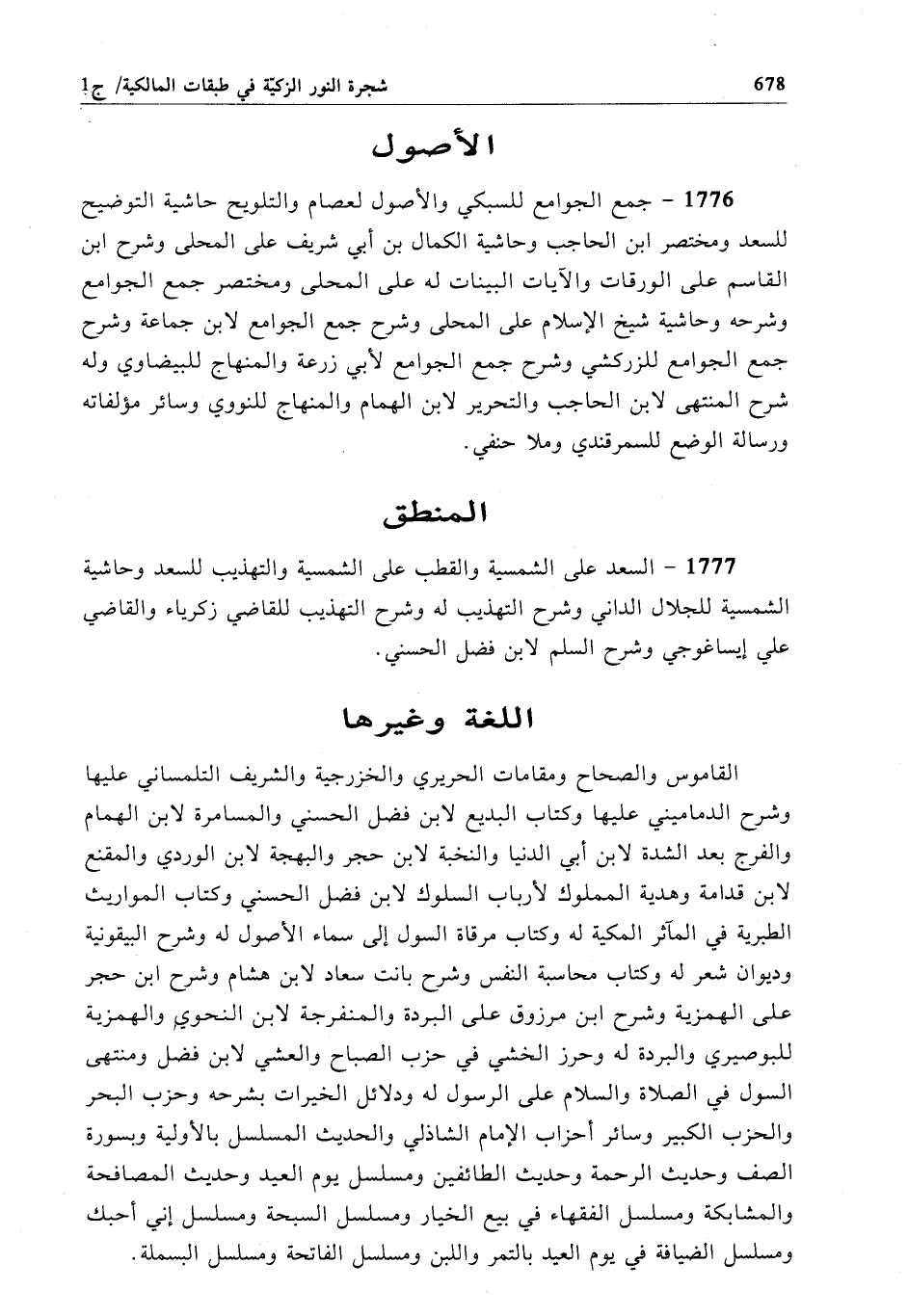 1777 - السعد على الشمسية والقطب على الشمسية والتهذيب للسعد وحاشية الشمسية للجلال الداني وشرح التهذيب له وشرح التهذيب للقاضي زكرياء والقاضي علي إيساغوجي وشرح السلم لابن فضل الحسني.