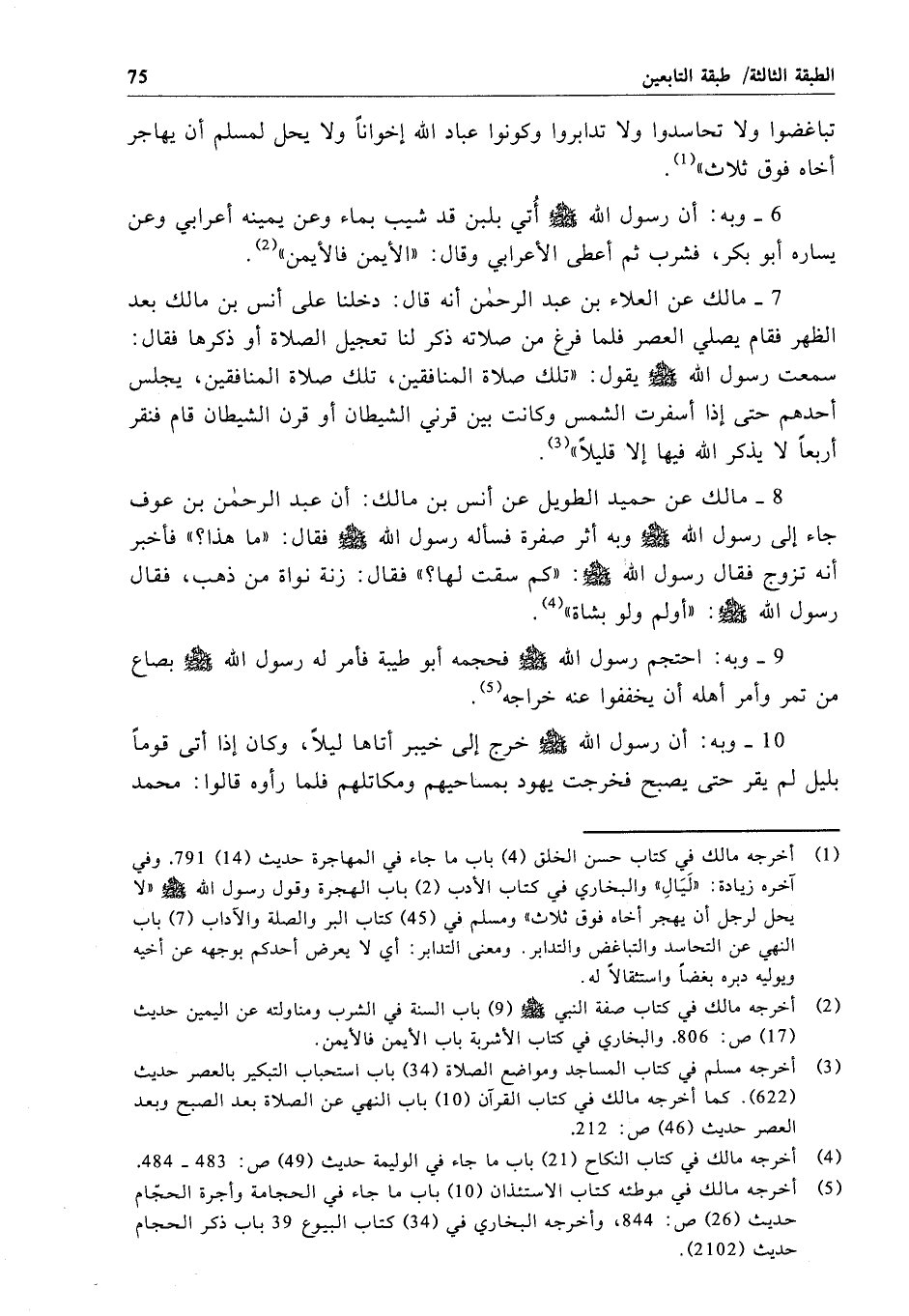 8 - مالك عن حميد الطويل عن أنس بن مالك: أن عبد الرحمن بن عوف جاء إلى رسول الله - صلى الله عليه وسلم - وبه أثر صفرة فسأله رسول الله - صلى الله عليه وسلم - فقال: "ما هذا؟ " فأخبر أنه تزوج فقال رسول الله - صلى الله عليه وسلم -: "كم سقت لها؟ " فقال: زنة نواة من ذهب، فقال رسول الله - صلى الله عليه وسلم -: "أولم ولو بشاة".