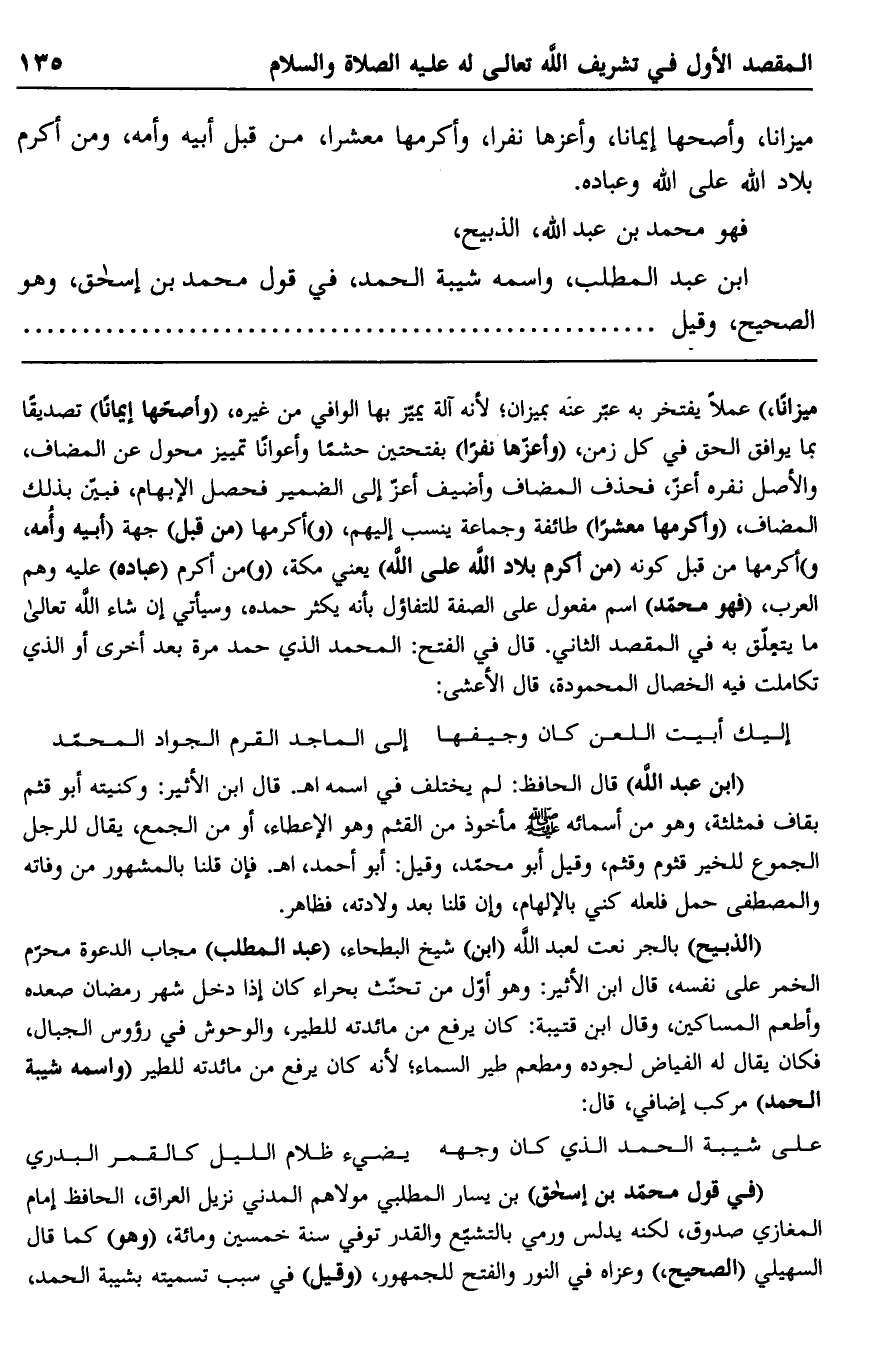 فهو محمد بن عبد الله، الذبيح, ابن عبد المطلب، واسمه شيبة الحمد، في قول محمد بن إسحاق، وهو الصحيح، وقيل..............................