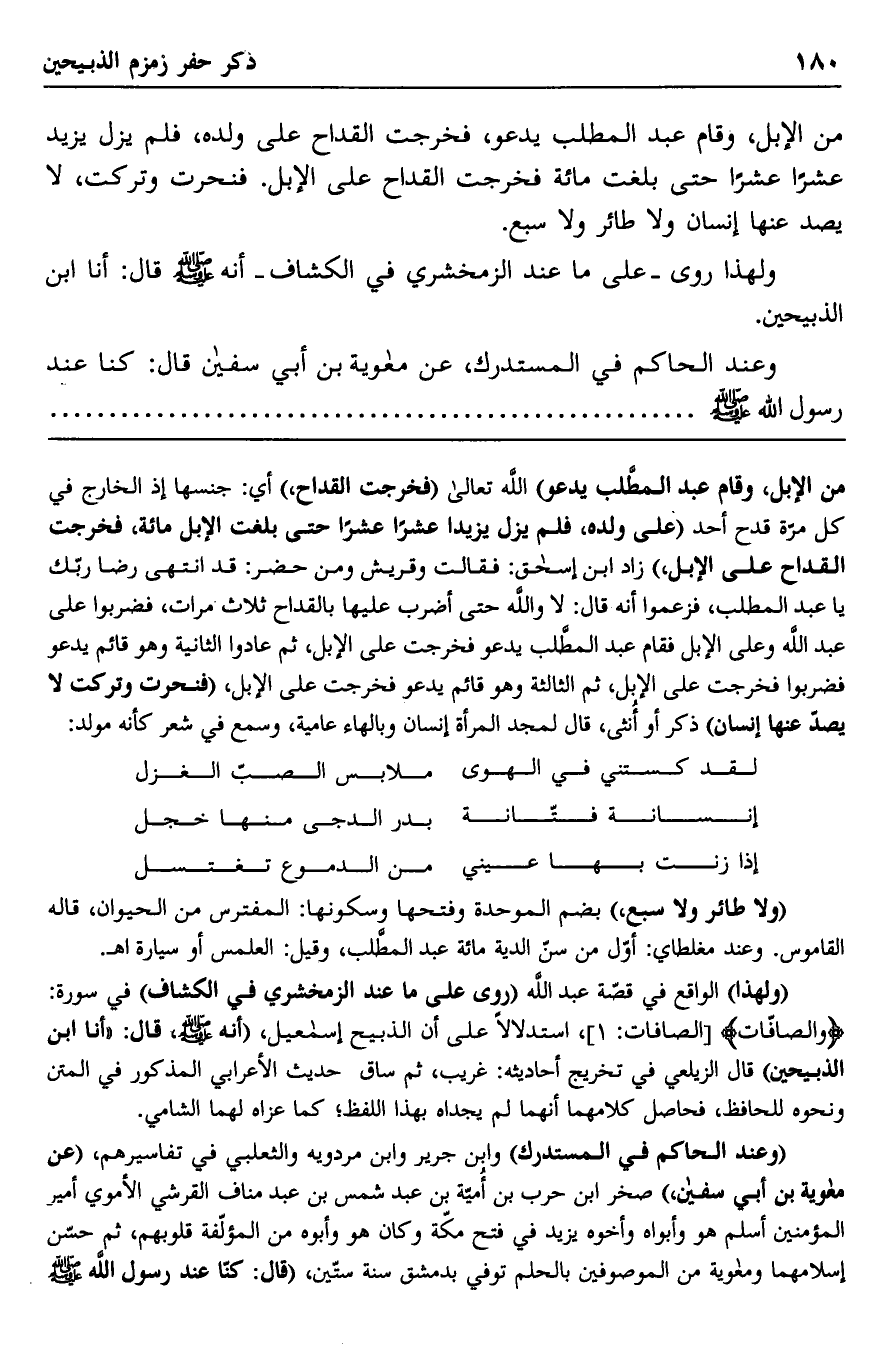 ولهذا روي -على ما عند الزمخشري في الكشاف- أنه صلى الله عليه وسلم قال: "أنا ابن الذبيحين".
