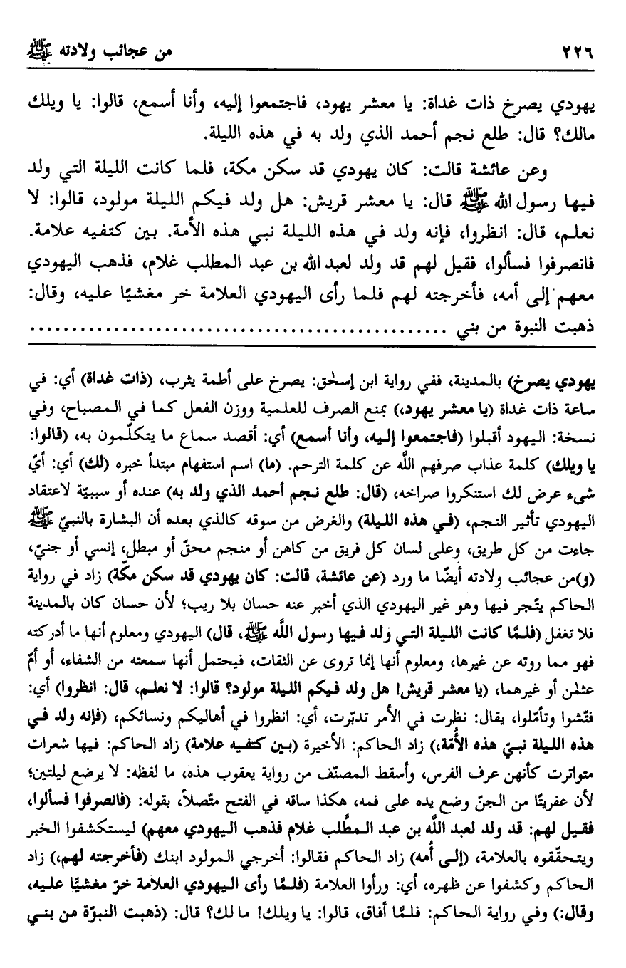 يهودي يصرخ ذات غداة: يا معشر يهود، فاجتمعوا إليه، وأنا أسمع، قالوا: يا ويلك ما لك؟ قال: طلع نجم أحمد الذي ولد به في هذه الليلة.