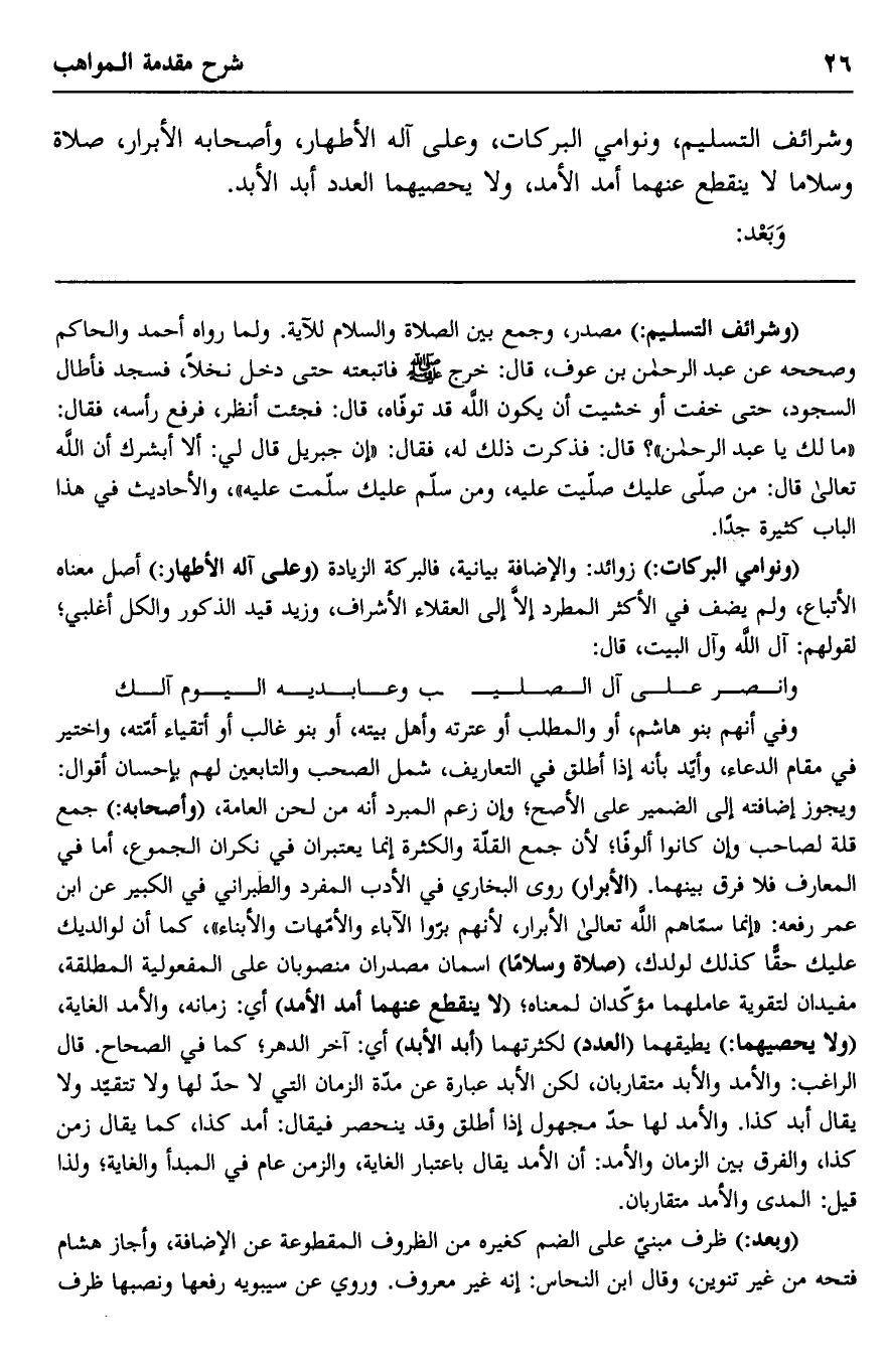 وشرائف التسليم، ونوامي البركات، وعلى آله الأطهار، وأصحابه الأبرار، صلاة وسلامًا لا ينقطع عنهما أمد الأمد، ولا يحصيهما العدد أبد الأبد.