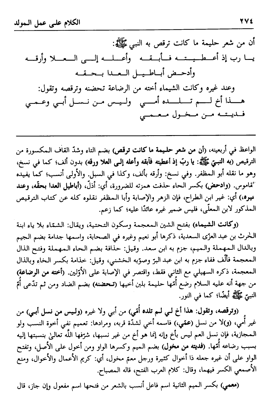 أن من شعر حليمة ما كانت ترقص به النبي صلى الله عليه وسلم.
