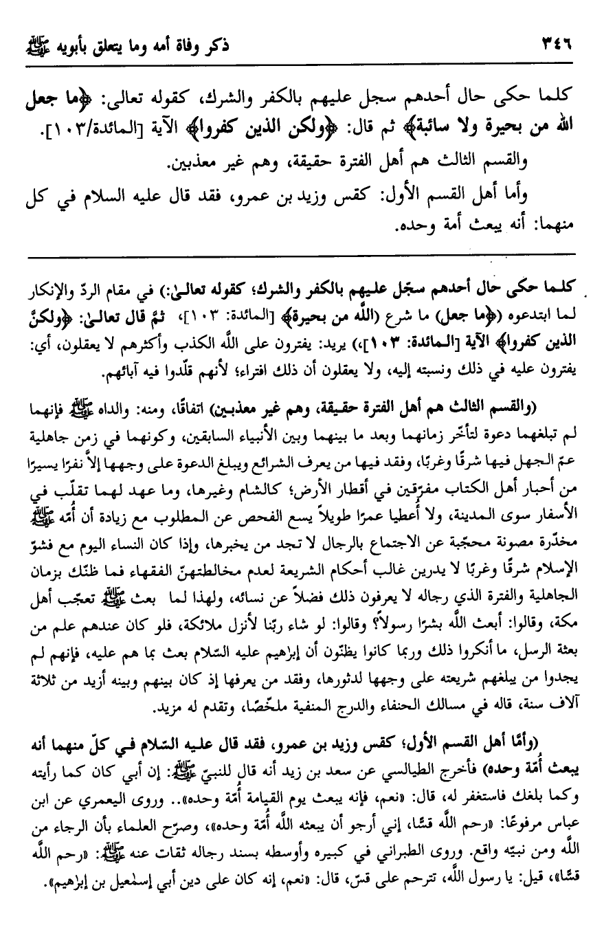وأما أهل القسم الأول: كقس وزيد بن عمرو، فقد قال عليه السلام في كل منهما: "إنه يبعث أمة وحده".