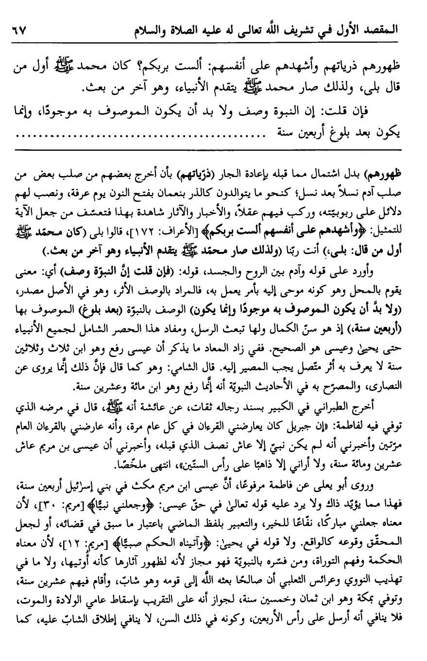 فإن قلت: إن النبوة وصف ولا بد أن يكون الموصوف به موجودًا، وإنما يكون بعد بلوغ أربعين سنة.................................