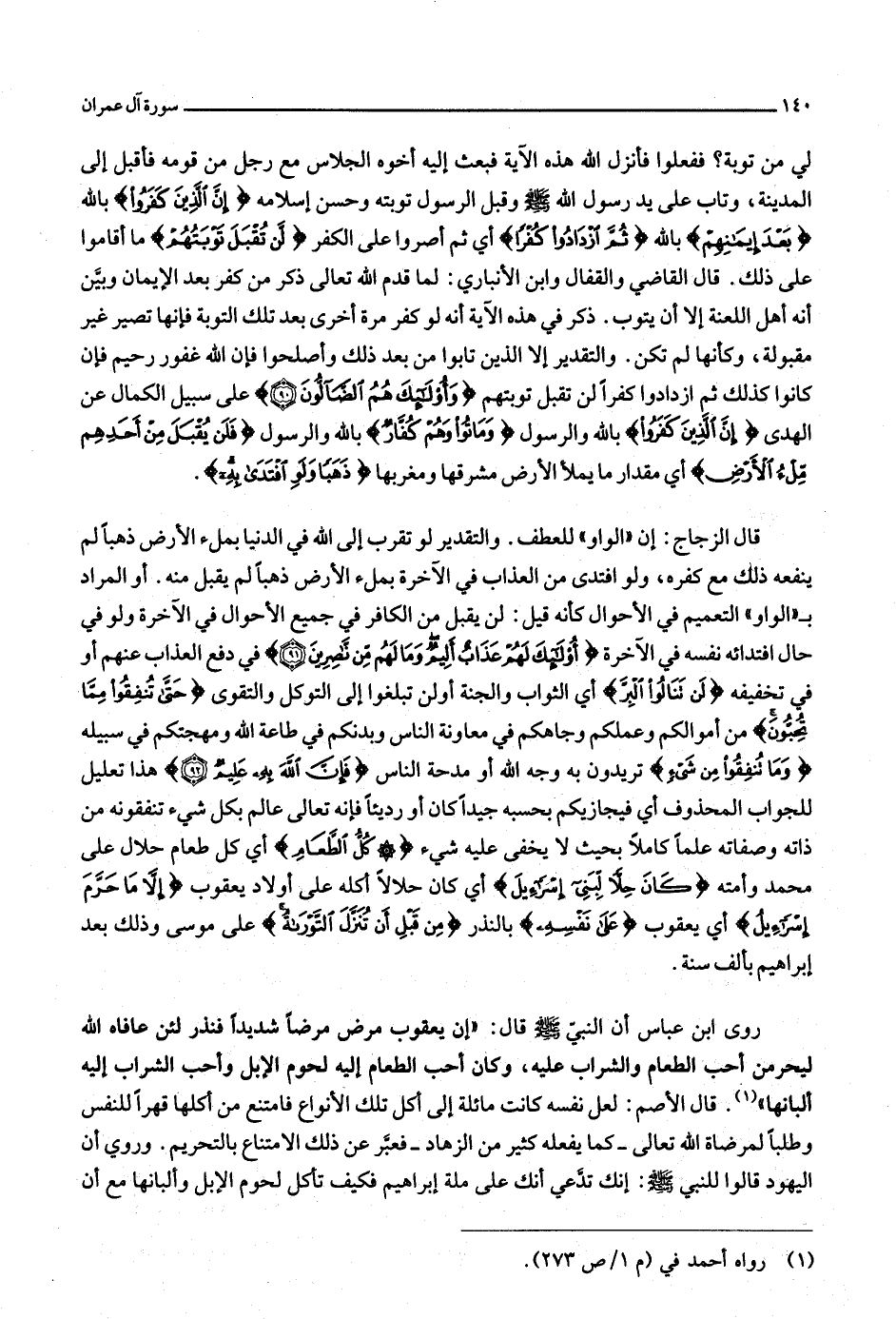 إِنَّ الَّذِينَ كَفَرُوا بالله والرسول وَماتُوا وَهُمْ كُفَّارٌ بالله والرسول فَلَنْ يُقْبَلَ مِنْ أَحَدِهِمْ مِلْءُ الْأَرْضِ أي مقدار ما يملأ الأرض مشرقها ومغربها ذَهَباً وَلَوِ افْتَدى بِهِ.