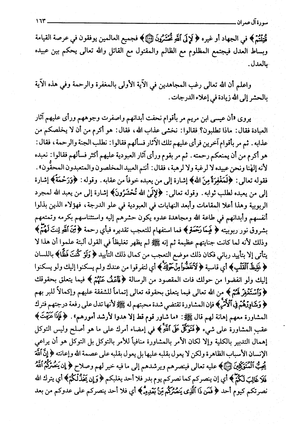 في الجهاد أو غيره لَإِلَى اللَّهِ تُحْشَرُونَ (158) فجميع العالمين يوفقون في عرصة القيامة وبساط العدل فيجتمع المظلوم مع الظالم والمقتول مع القاتل والله تعالى يحكم بين عبيده بالعدل.