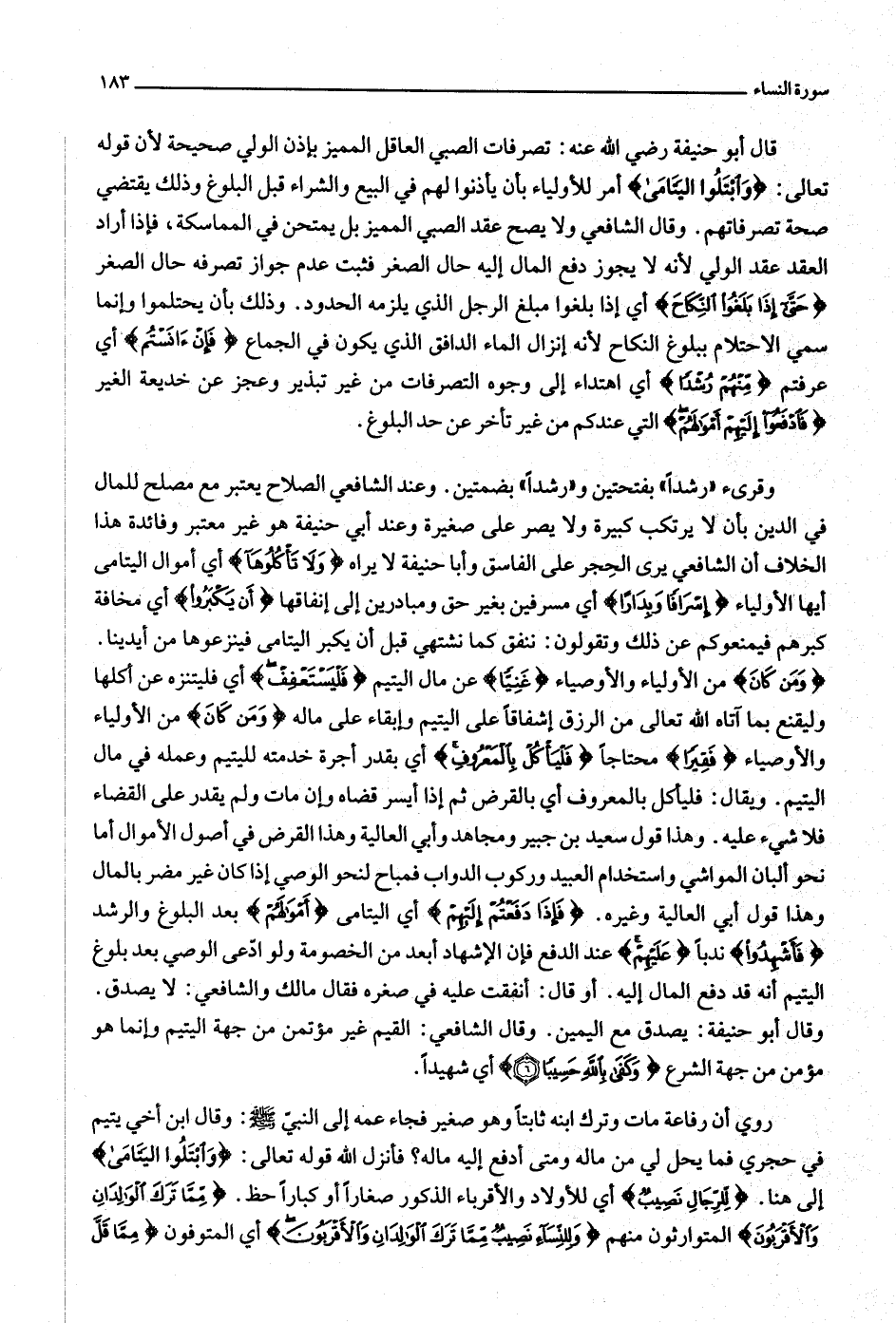 معتبر وفائدة هذا الخلاف أن الشافعي يرى الحجر على الفاسق وأبا حنيفة لا يراه وَلا تَأْكُلُوها أي أموال اليتامى أيها الأولياء إِسْرافاً وَبِداراً أي مسرفين بغير حق ومبادرين إلى إنفاقها أَنْ يَكْبَرُوا أي مخافة كبرهم فيمنعوكم عن ذلك وتقولون: ننفق كما نشتهي قبل أن يكبر اليتامى فينزعوها من أيدينا.