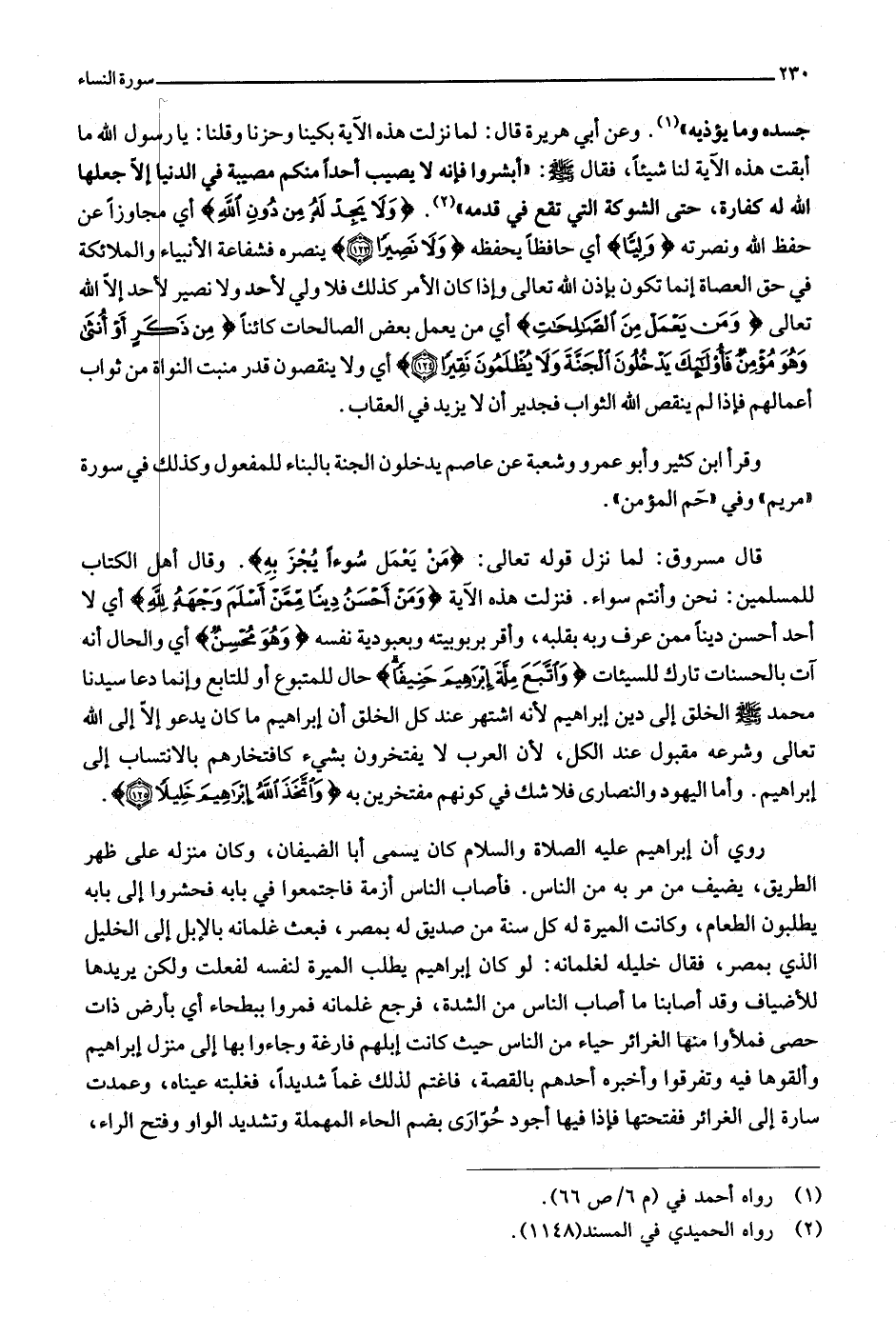 قال مسروق: لما نزل قوله تعالى: مَنْ يَعْمَلْ سُوءاً يُجْزَ بِهِ. وقال أهل الكتاب للمسلمين: نحن وأنتم سواء. فنزلت هذه الآية وَمَنْ أَحْسَنُ دِيناً مِمَّنْ أَسْلَمَ وَجْهَهُ لِلَّهِ أي لا أحد أحسن دينا ممن عرف ربه بقلبه، وأقر بربوبيته وبعبودية نفسه وَهُوَ مُحْسِنٌ أي والحال أنه آت بالحسنات تارك للسيئات وَاتَّبَعَ مِلَّةَ إِبْراهِيمَ حَنِيفاً حال للمتبوع أو للتابع وإنما دعا سيدنا محمد صلّى الله عليه وسلّم الخلق إلى دين إبراهيم لأنه اشتهر عند كل الخلق أن إبراهيم ما كان يدعو إلّا إلى الله تعالى وشرعه مقبول عند الكل، لأن العرب لا يفتخرون بشيء كافتخارهم بالانتساب إلى إبراهيم. وأما اليهود والنصارى فلا شك في كونهم مفتخرين به وَاتَّخَذَ اللَّهُ إِبْراهِيمَ خَلِيلًا (125) .