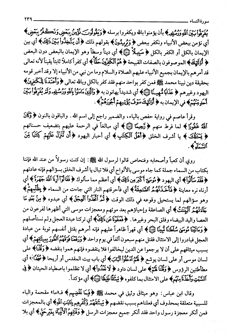 وقرأ عاصم في رواية حفص بالياء، والضمير راجع إلى اسم الله. والباقون بالنون وَكانَ اللَّهُ غَفُوراً لما فرط منهم رَحِيماً (152) أي مبالغا في الرحمة عليهم بتضعيف حسناتهم يَسْئَلُكَ يا أشرف الخلق أَهْلُ الْكِتابِ أي أحبار اليهود أَنْ تُنَزِّلَ عَلَيْهِمْ كِتاباً مِنَ السَّماءِ.
