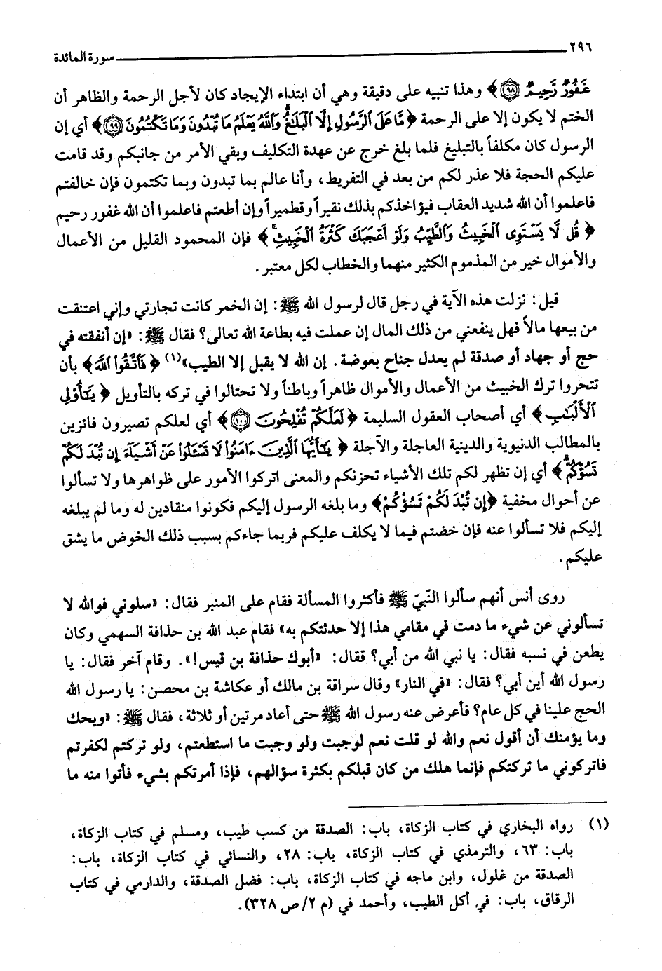 (1) رواه البخاري في كتاب الزكاة، باب: الصدقة من كسب طيب، ومسلم في كتاب الزكاة، باب: 63، والترمذي في كتاب الزكاة، باب: 28، والنسائي في كتاب الزكاة، باب: