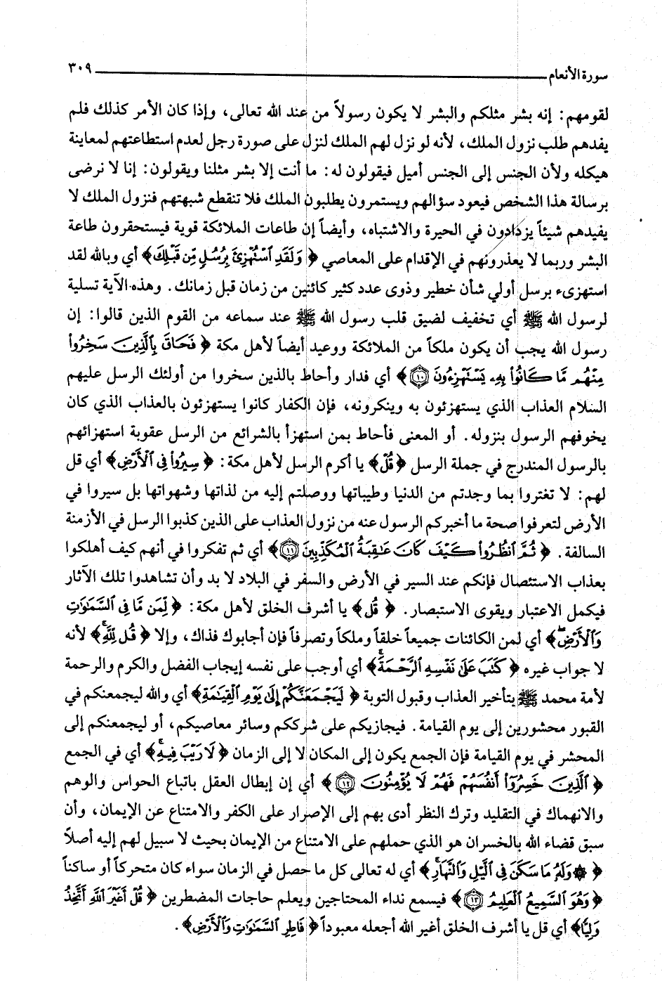 قُلْ يا أكرم الرسل لأهل مكة: سِيرُوا فِي الْأَرْضِ أي قل لهم: لا تغتروا بما وجدتم من الدنيا وطيباتها ووصلتم إليه من لذاتها وشهواتها بل سيروا في الأرض لتعرفوا صحة ما أخبركم الرسول عنه من نزول العذاب على الذين كذبوا الرسل في الأزمنة السالفة. ثُمَّ انْظُرُوا كَيْفَ كانَ عاقِبَةُ الْمُكَذِّبِينَ (11) أي ثم تكفروا في أنهم كيف أهلكوا بعذاب الاستئصال فإنكم عند السير في الأرض والسفر في البلاد لا بد وأن تشاهدوا تلك الآثار فيكمل الاعتبار ويقوى الاستبصار. قُلْ يا أشرف الخلق لأهل مكة: لِمَنْ ما فِي السَّماواتِ وَالْأَرْضِ أي لمن الكائنات جميعا خلقا وملكا وتصرفا فإن أجابوك فذاك، وإلا قُلْ لِلَّهِ لأنه لا جواب غيره كَتَبَ عَلى نَفْسِهِ الرَّحْمَةَ أي أوجب على نفسه إيجاب الفضل والكرم والرحمة لأمة محمد صلّى الله عليه وسلّم بتأخير العذاب وقبول التوبة لَيَجْمَعَنَّكُمْ إِلى يَوْمِ الْقِيامَةِ أي والله ليجمعنكم في القبور محشورين إلى يوم القيامة. فيجازيكم على شرككم وسائر معاصيكم، أو ليجمعنكم إلى المحشر في يوم القيامة فإن الجمع يكون إلى المكان لا إلى الزمان لا رَيْبَ فِيهِ أي في الجمع الَّذِينَ خَسِرُوا أَنْفُسَهُمْ فَهُمْ لا يُؤْمِنُونَ (12) أي إن إبطال العقل باتباع الحواس والوهم والانهماك في التقليد وترك النظر أدى بهم إلى الإصرار على الكفر والامتناع عن الإيمان، وأن سبق قضاء الله بالخسران هو الذي حملهم على الامتناع من الإيمان بحيث لا سبيل لهم إليه أصلا وَلَهُ ما سَكَنَ فِي اللَّيْلِ وَالنَّهارِ أي له تعالى كل ما حصل في الزمان سواء كان متحركا أو ساكنا وَهُوَ السَّمِيعُ الْعَلِيمُ (13) فيسمع نداء المحتاجين ويعلم حاجات المضطرين قُلْ أَغَيْرَ اللَّهِ أَتَّخِذُ وَلِيًّا أي قل يا أشرف الخلق أغير الله أجعله معبودا فاطِرِ السَّماواتِ وَالْأَرْضِ.