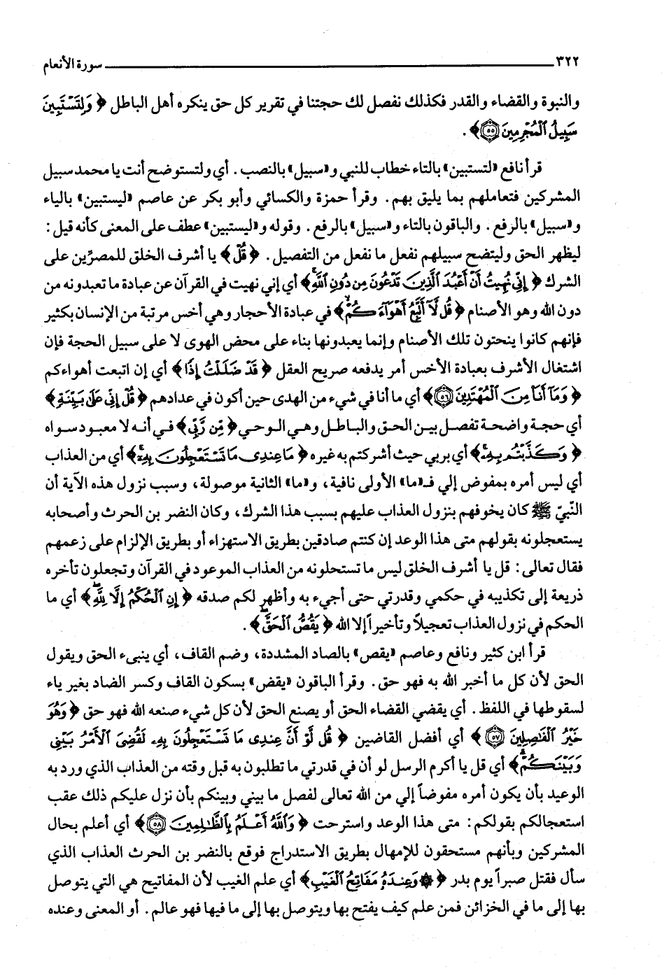 والنبوة والقضاء والقدر فكذلك نفصل لك حجتنا في تقرير كل حق ينكره أهل الباطل وَلِتَسْتَبِينَ سَبِيلُ الْمُجْرِمِينَ (55) .