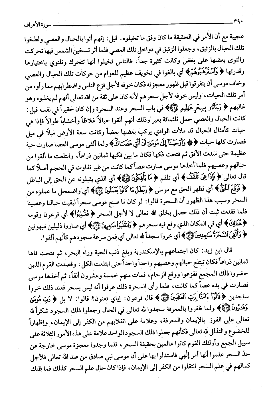قال ابن زيد: كان اجتماعهم بالإسكندرية وبلغ ذنب الحية وراء البحر، ثم فتحت فاها ثمانين ذراعا فكان تبتلع حبالهم وعصيهم واحدا واحدا حتى ابتلعت الكل، وقصدت القوم الذين حضروا ذلك المجمع ففزعوا ووقع الزحام، فمات منهم خمسة وعشرون ألفا، ثم أخذها موسى فصارت في يده عصا كما كانت، فلما رأى السحرة ذلك عرفوا أنه ليس بسحر فعند ذلك خروا ساجدين