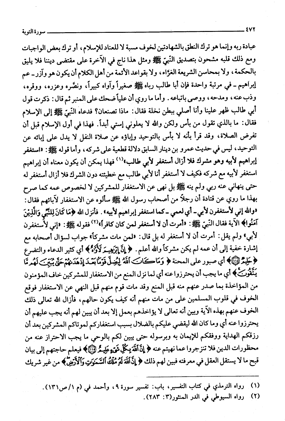 (1) رواه الترمذي في كتاب التفسير، باب: تفسير سورة 9، وأحمد في (م 1/ ص 131) . [.....]