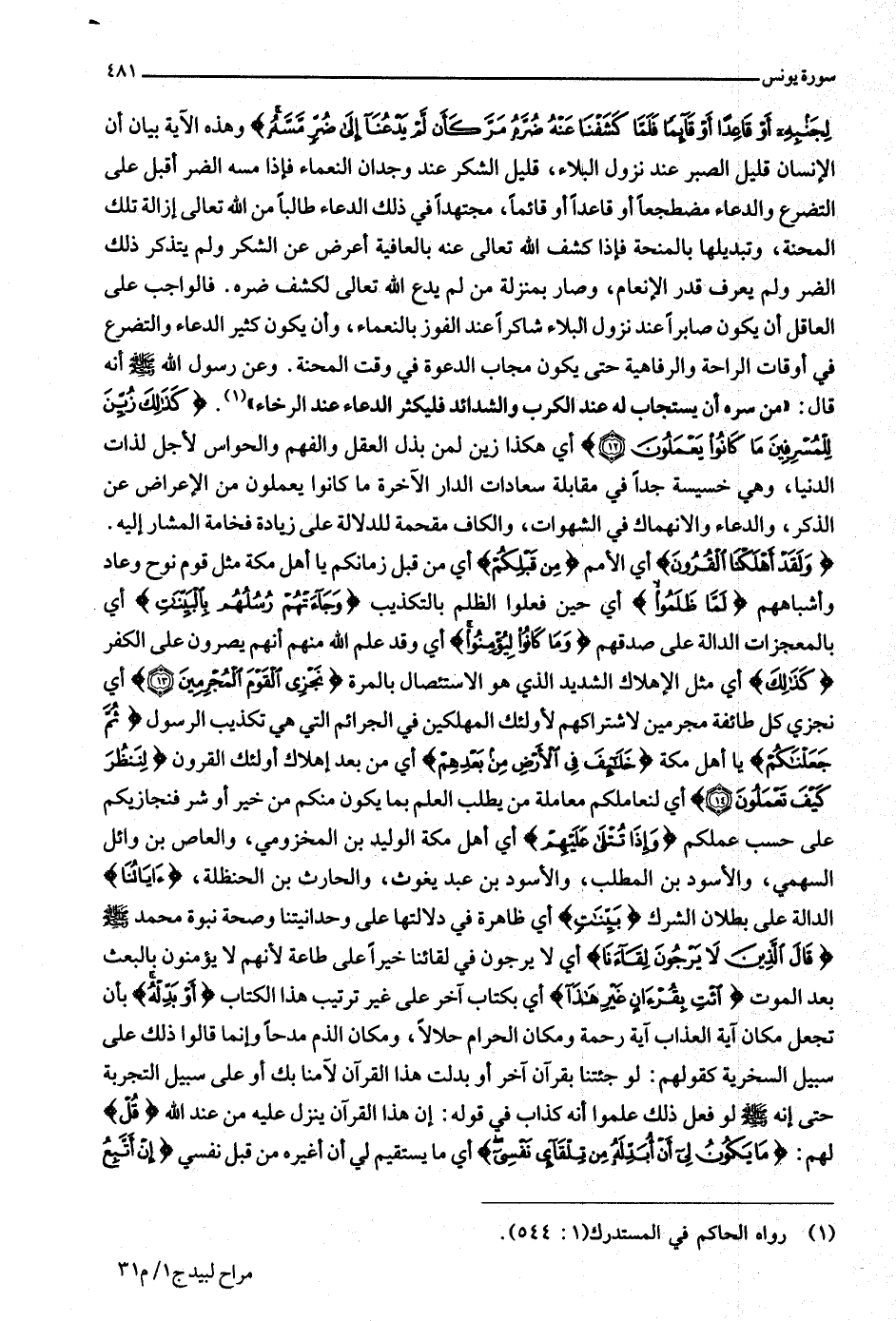 (1) رواه الحاكم في المستدرك (1: 544) .