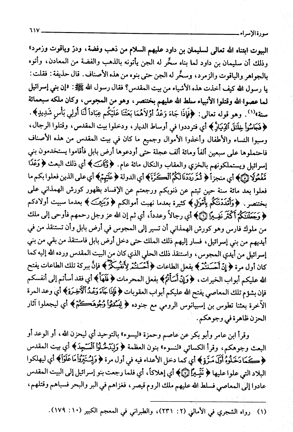 يا رسول الله كيف أخذت هذه الأشياء من بيت المقدس؟ فقال رسول الله صلّى الله عليه وسلّم: «إن بني إسرائيل لما عصوا الله وقتلوا الأنبياء سلط الله عليهم بختنصر، وهو من المجوس، وكان ملكه سبعمائة سنة»