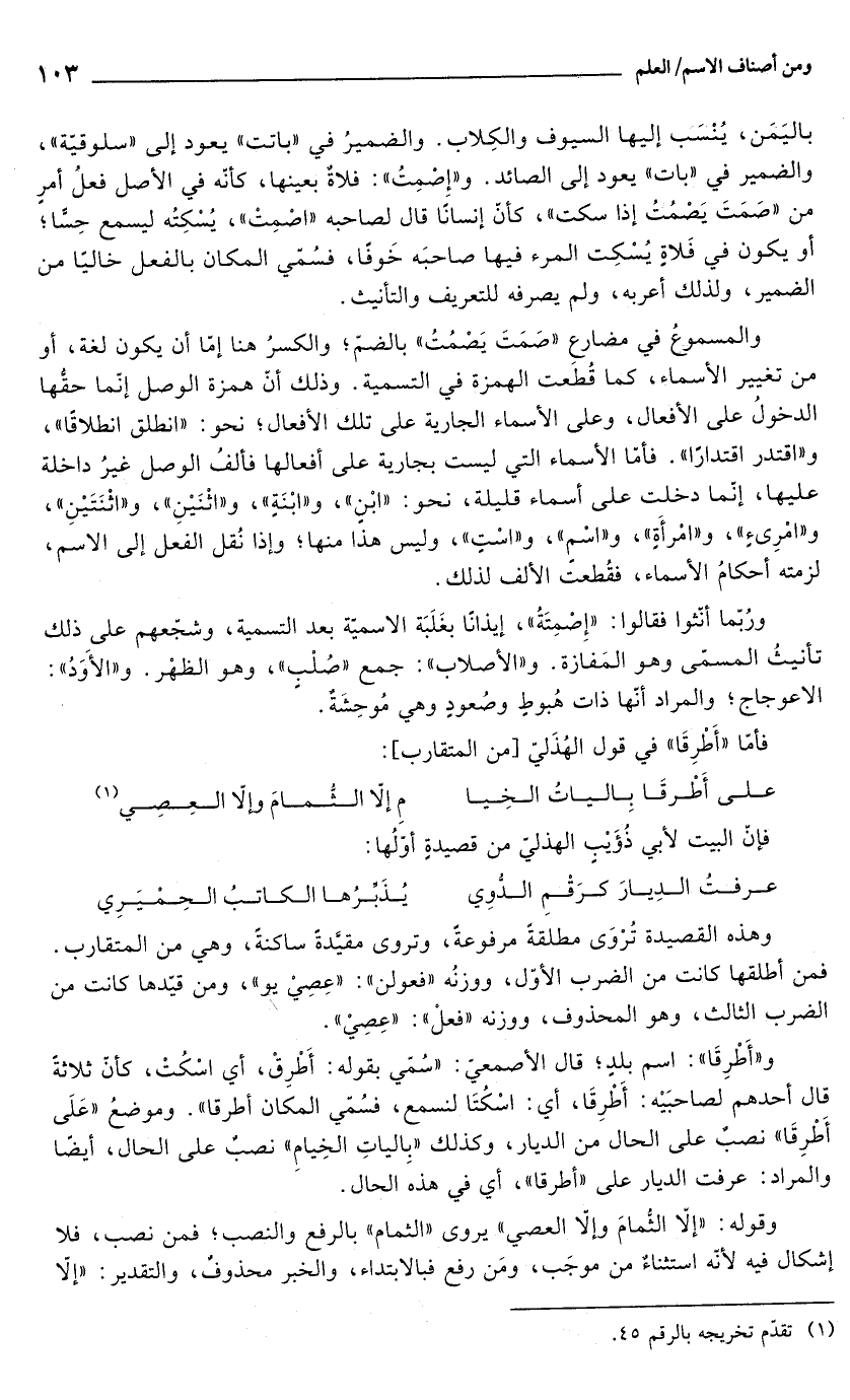 ورُبّما أنّثوا فقالوا: "إِصْمِتَةُ"، إيذانًا بغَلَبَة الاسميّة بعد التسمية، وشجّعهم على ذلك تأنيثُ المسمّى وهو المَفازة. و"الأصلاب": جمع "صُلْبٍ"، وهو الظهْر. و"الأوَدُ": الاعوجاج؛ والمراد أنها ذات هُبوطٍ وصُعودٍ وهي مُوحِشَةٌ.