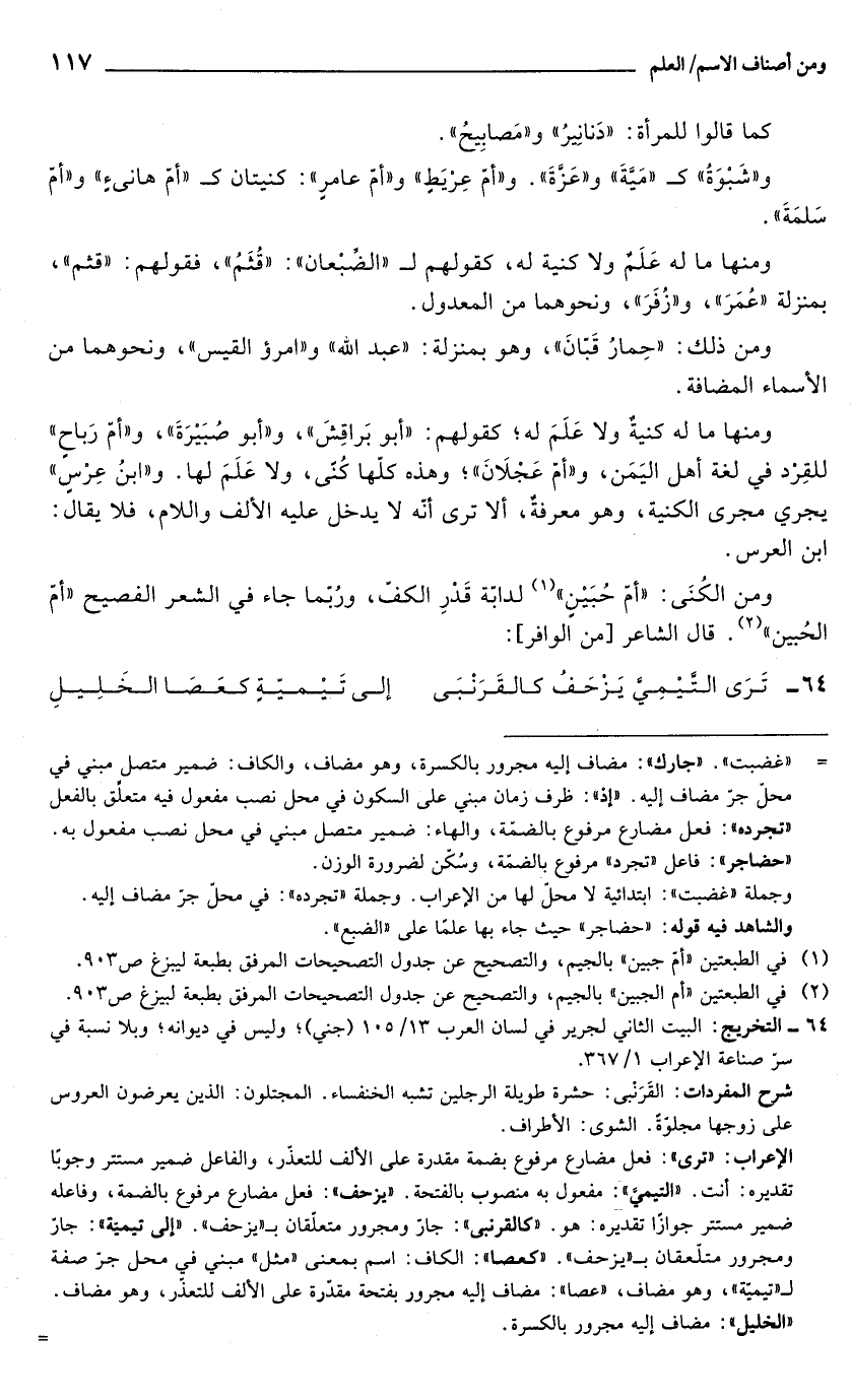 و"شَبْوَةُ" كـ "مَيَّةَ" و"عَزَّةَ". و"أمّ عِرْيَطٍ" و"أمّ عامرٍ": كنيتان كـ "أمّ هانئ" و"أمّ سَلمَةَ".