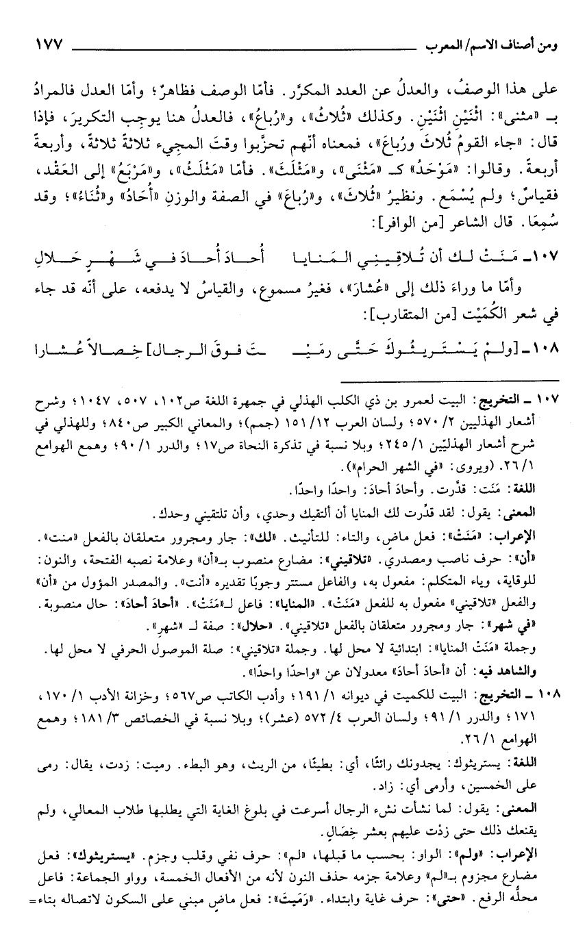 108 - التخريج: البيت للكميت في ديوانه 1/ 191؛ وأدب الكاتب ص 567؛ وخزانة الأدب 1/ 170، 171؛ والدرر 1/ 91؛ ولسان العرب 4/ 572 (عشر)؛ وبلا نسبة في الخصائص 3/ 181؛ وهمع الهوامع 1/ 26.