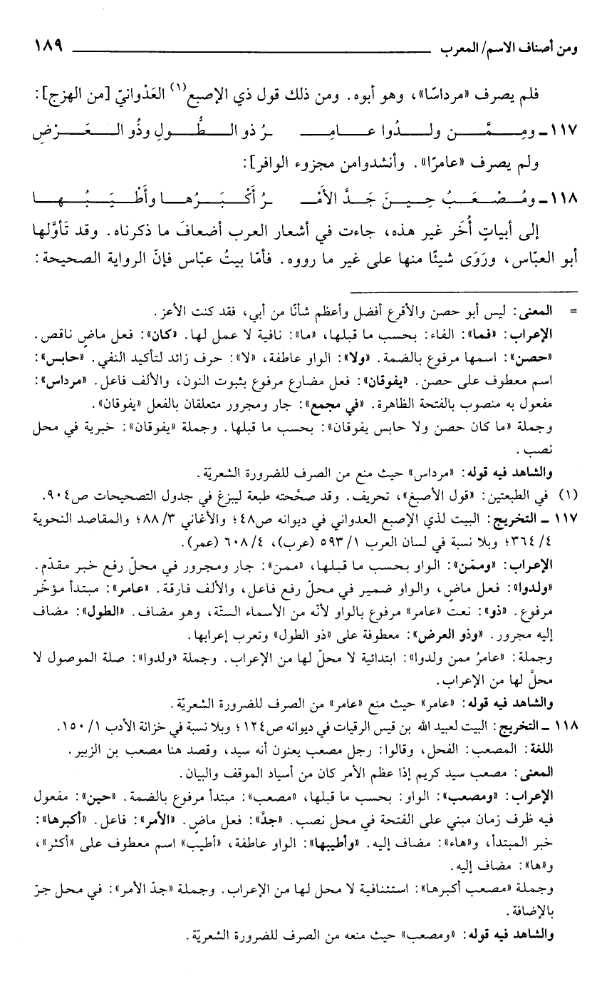 والشاهد فيه قوله: "ومصعب" حيث معه من الصرف للضرورة الشعريّة.