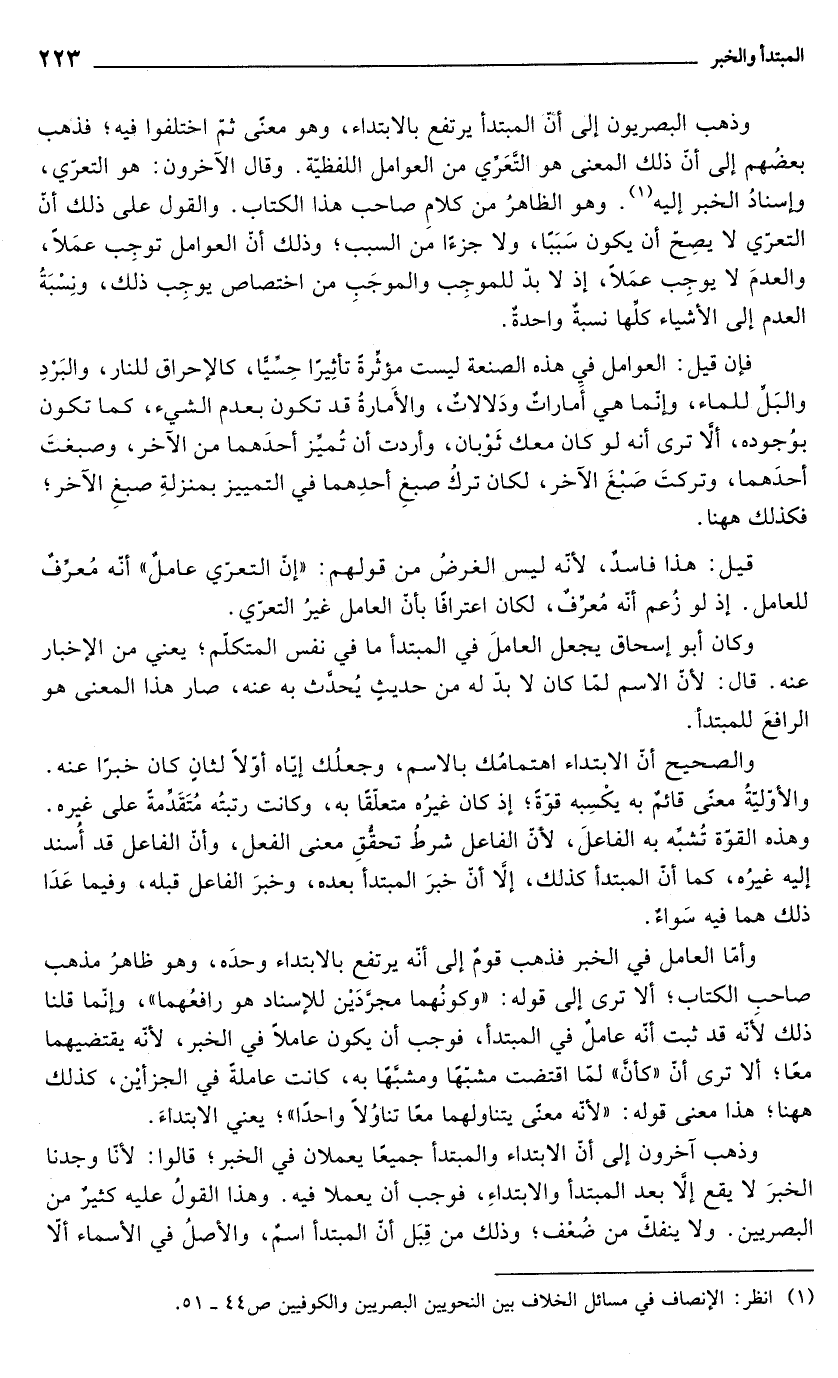 (¬1) انظر: الإنصاف في مسائل الخلاف بين النحويين البصريين والكوفيين ص 44 - 51.