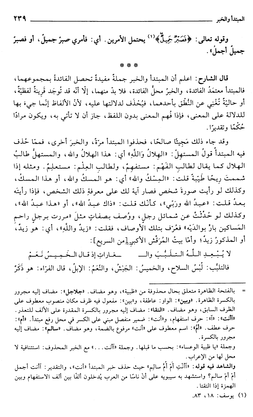 وقوله تعالى: {فصبرٌ جميلٌ} (¬1) يحتمل الأمرين. أي فأمري صبرٌ جميلٌ أو فصبرٌ جميلٌ أجملُ".
