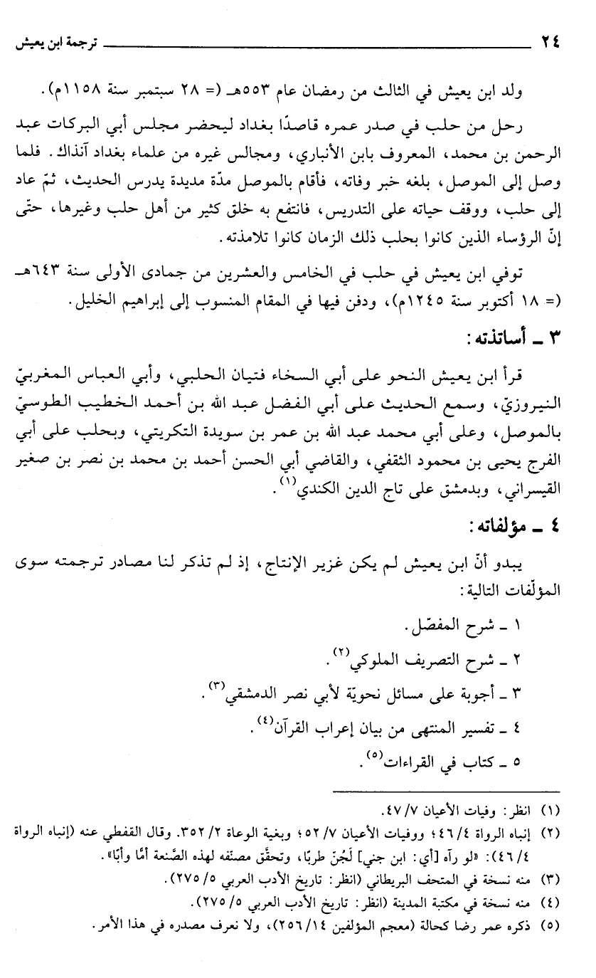 (¬2) إنباه الرواة 4/ 46؛ ووفيات الأعيان 7/ 52؛ وبغية الوعاة 2/ 352. وقال القفطي عنه (إنباه الرواة 4/ 46): "لو رآه [أي: ابن جني] لَجُنّ طربًا، وتحقق مصّنفه لهذه الصَّنعة أمّا وأبًا".