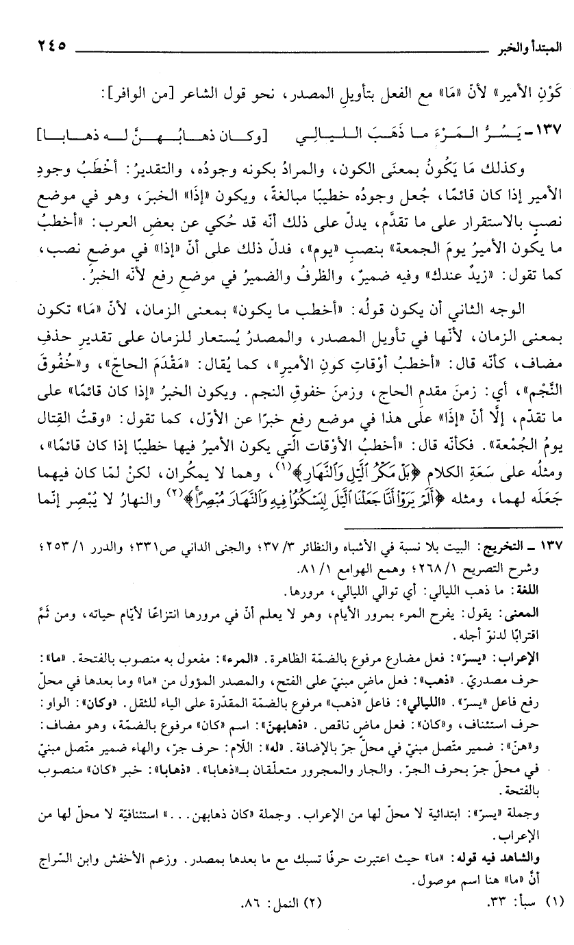 137 - يَسُرُّ المَرْءَ ما ذَهَبَ الليالِي ... [وكان ذهابُهن له ذهابا]