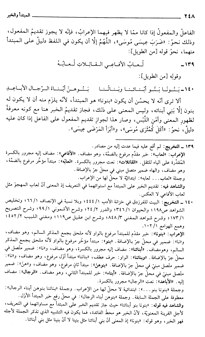 140 - بَنُونَا بَنُو أبْنائنا وبَناتُنا ... بَنُوهنّ أبْناءُ الرِّجال الأباعِدِ