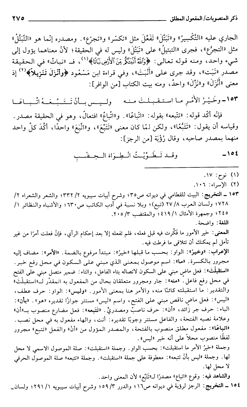153 - وخَيْرُ الأَمْرِ ما استقبلتَ منه ... وليس بأنْ تَتَبَّعَهُ اتِّباعًا