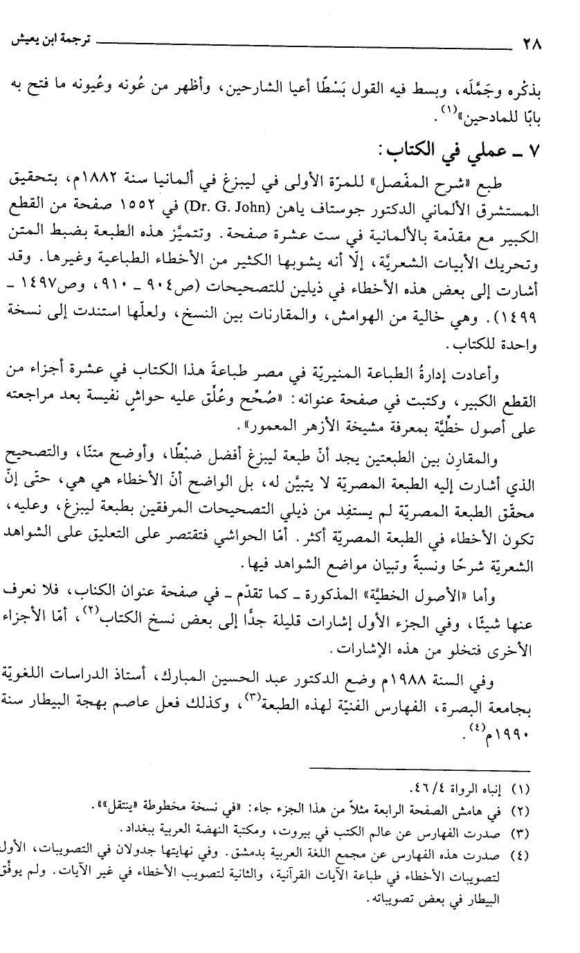والمقارِن بين الطبعتين يجد أنّ طبعة ليبزغ أفضل ضبْطًا، وأوضح متنًا، والتصحيح الذي أشارت إليه الطبعة المصرية لا يتبين له، بل الواضح أن الأخطاء هي هي، حتّى إنّ محقق الطبعة المصرية لم يستفِد من ذيلي التصحيحات المرفقين بطبعة ليبزغ، وعليه، تكون الأخطاء في الطبعة المصرية أكثر. أمّا الحواشي فتقتصر على التعليق على الشواهد الشعرية شرحًا ونسبةً وتبيان مواضع الشواهد فيها.