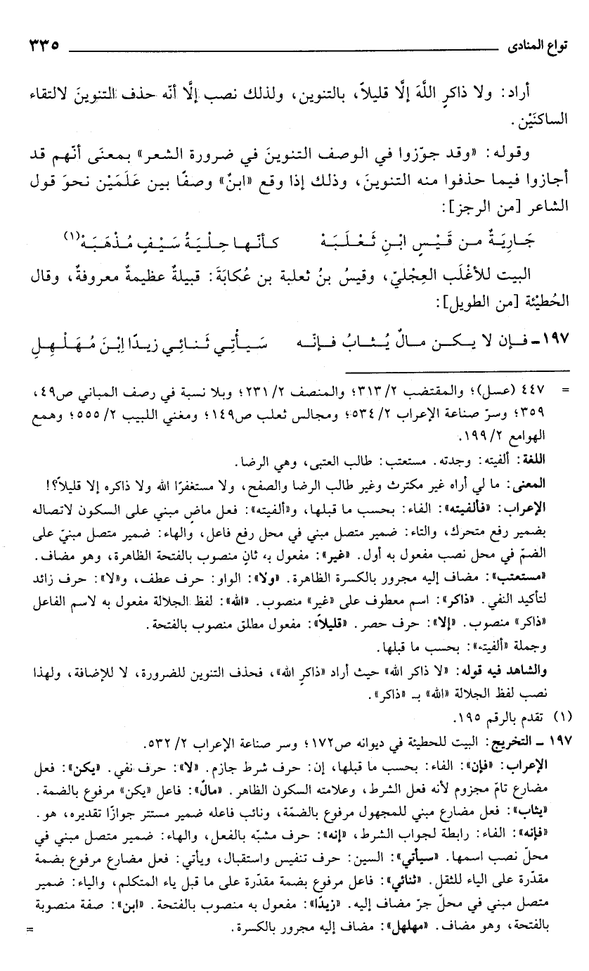 197 - التخريج: البيت للحطيئة في ديوانه ص 172؛ وسر صناعة الإعراب 2/ 532.