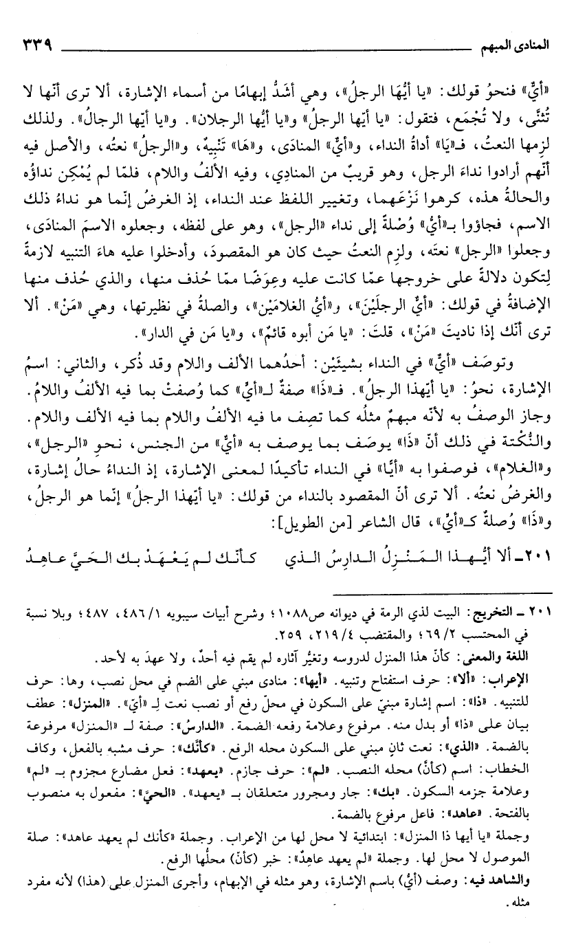 201 - ألا أيُّهذا المَنْزِلُ الدارِسُ الذي ... كأنّك لم يَعْهَدْ بك الحَيَّ عاهِدُ