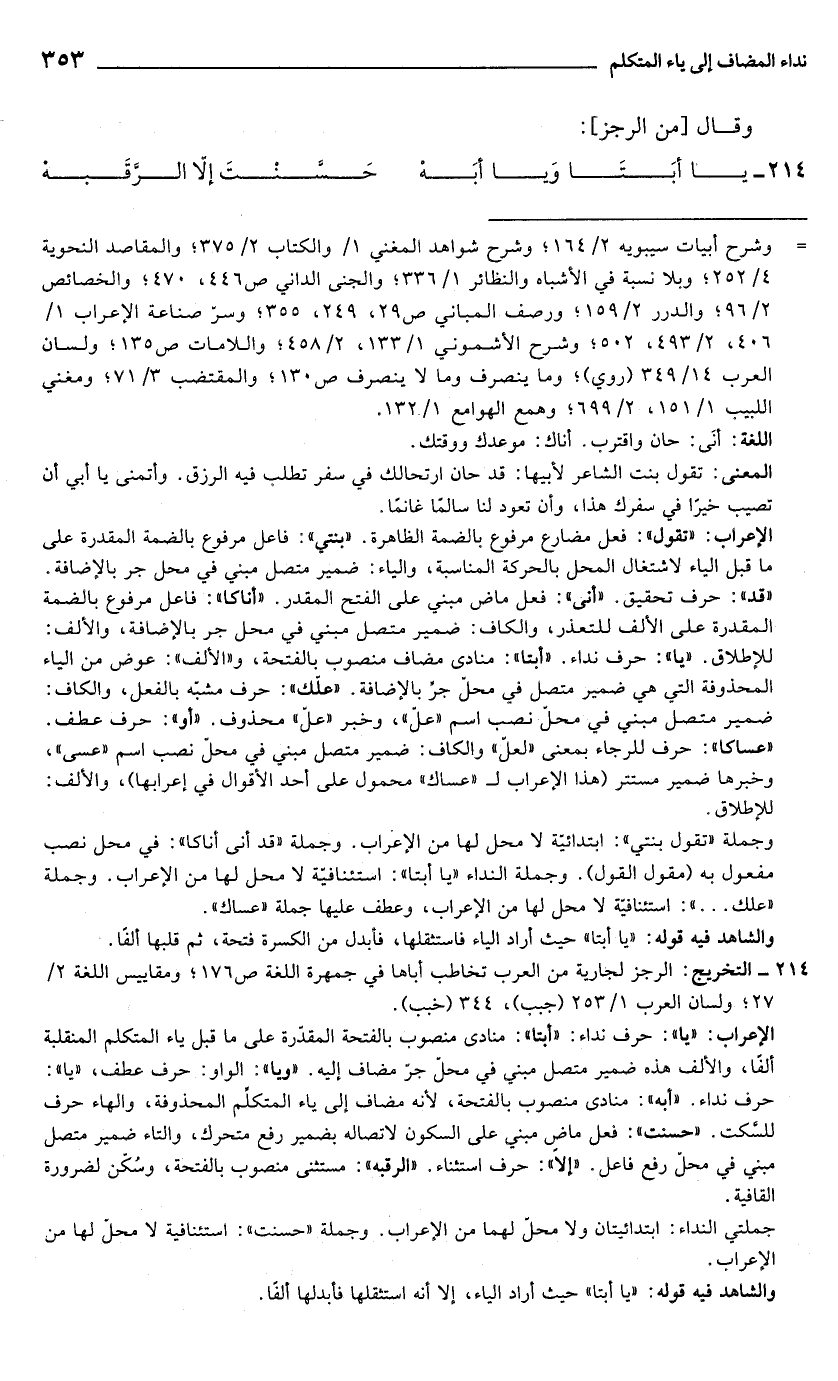 214 - يا أبَتَا وَيا أبَهْ ... حَسَّنْتَ إلّا الرَّقَبهْ