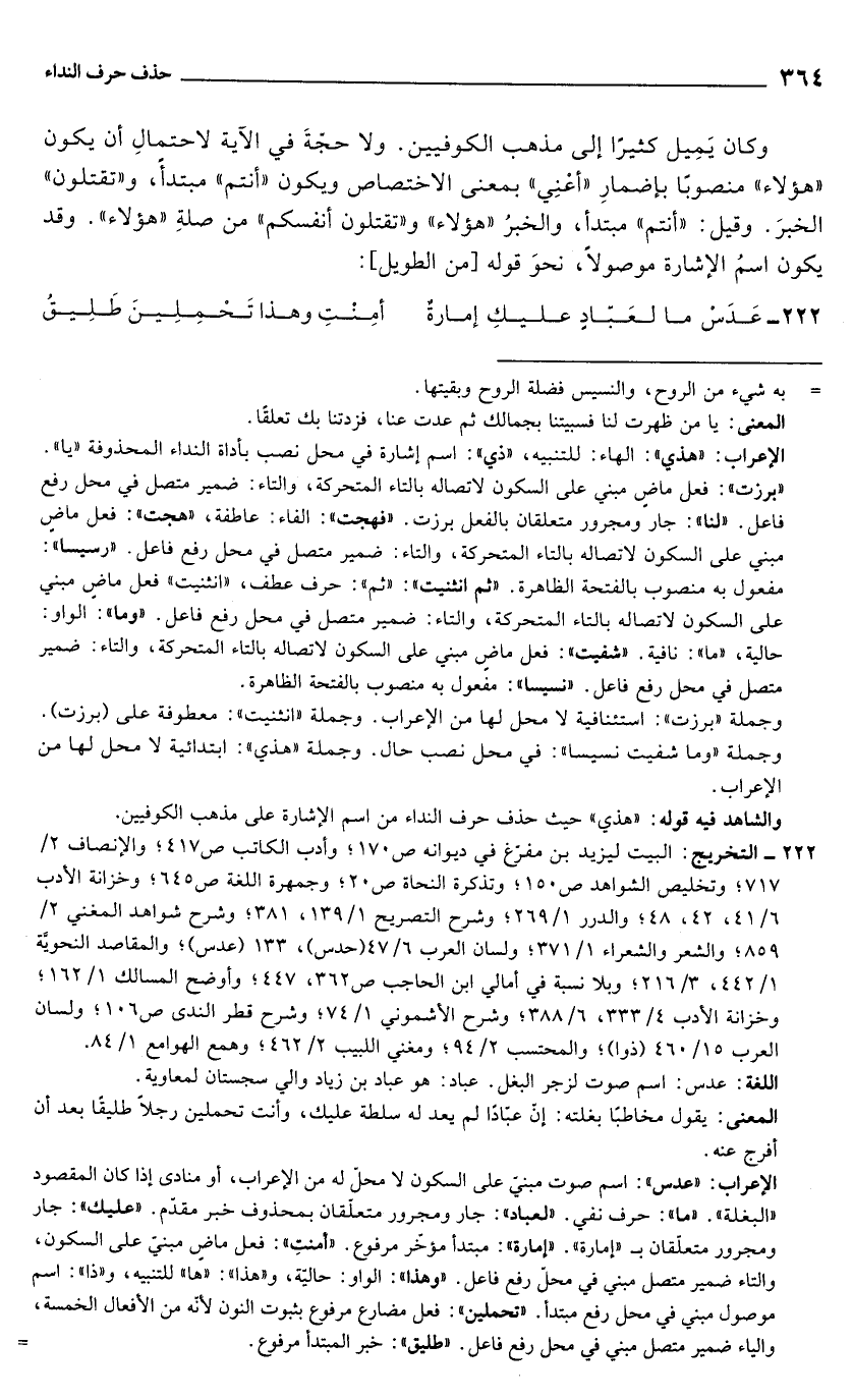 الإعراب: "هذي": الهاء: للتنبيه، "ذي": اسم إشارة في محل نصب بأداة النداء المحذوفة "يا". "برزت": فعل ماضٍ مبني على السكون لاتصاله بالتاء المتحركة، والتاء: ضمير متصل في محل رفع فاعل. "لنا": جار ومجرور متعلقان بالفعل برزت. "فهجت": الفاء: عاطفة، "هجت": فعل ماضٍ مبني على السكون لاتصاله بالتاء المتحركة، والتاء: ضمير متصل في محل رفع فاعل. "رسيسا": مفعول به منصوب بالفتحة الظاهرة. "ثم انثنيت": "ثم": حرف عطف، "انثنيت" فعل ماضٍ مبني على السكون لاتصاله بالتاء المتحركة، والتاء: ضمير فصل في محل رفع فاعل. "وما": الواو: حالية، "ما": نافية. "شفيت": فعل ماضٍ مبني على السكون لاتصاله بالتاء المتحركة، والتاء: ضمير متصل في محل رفع فاعل. "نسيسا": مفعول به منصوب بالفتحة الظاهرة.