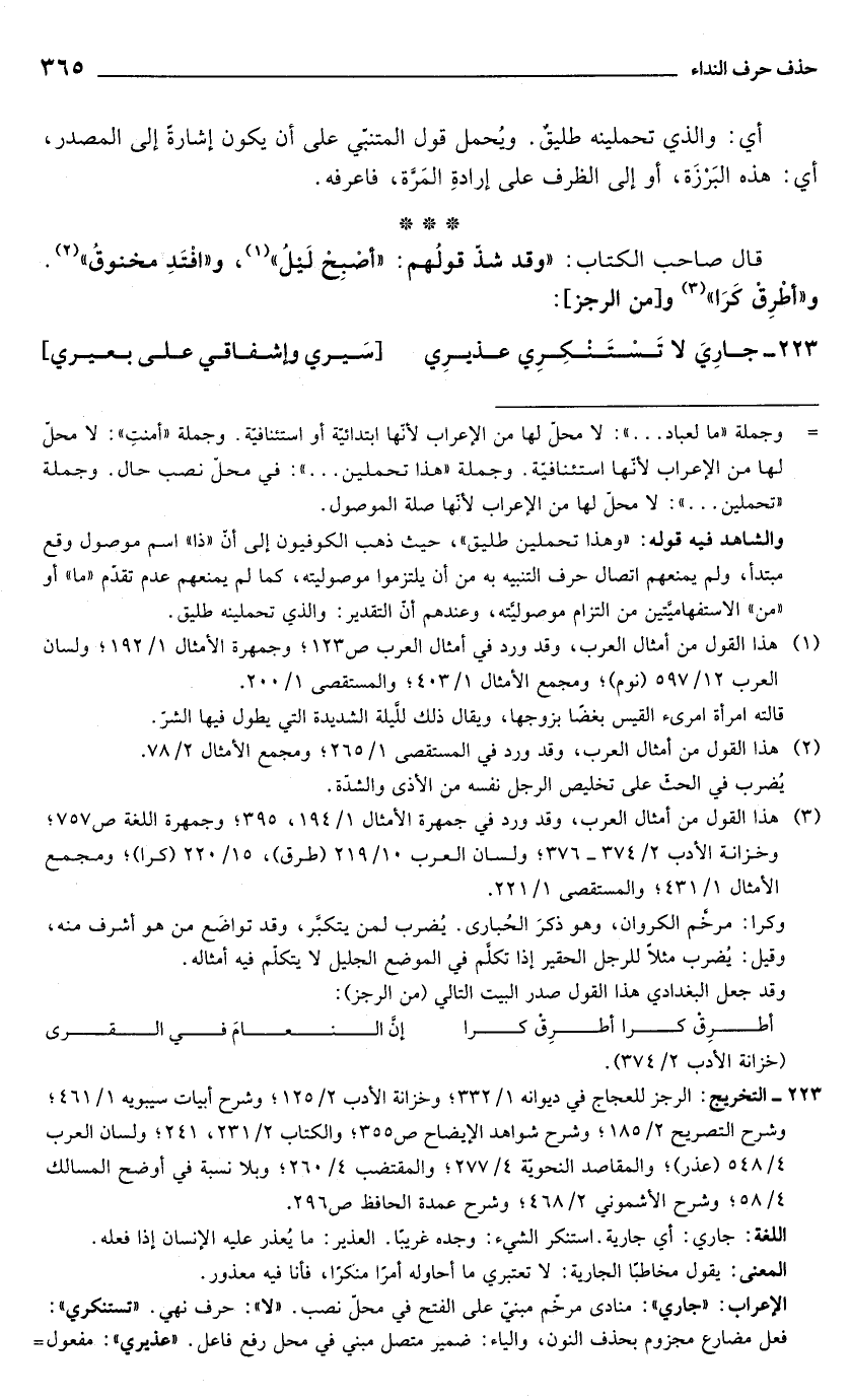 223 - التخريج: الرجز للعجاج في ديوانه 1/ 332؛ وخزانة الأدب 2/ 125؛ وشرح أبيات سيبويه 1/ 461؛ وشرح التصريح 2/ 185؛ وشرح شواهد الإيضاح ص 355؛ والكتاب 2/ 231، 241؛ ولسان الحرب 4/ 548 (عذر)؛ والمقاصد النحويّة 4/ 277؛ والمقتضب 4/ 260؛ وبلا نسبة في أوضح المسالك 4/ 58؛ وشرح الأشموني 2/ 468؛ وشرح عمدة الحافظ ص 296.