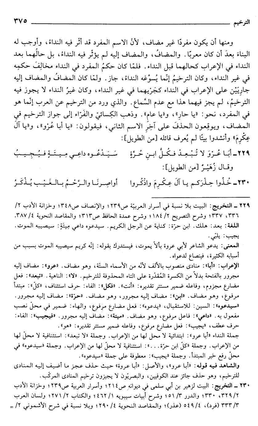 229 - التخريج: البيت بلا نسبة في أسرار العربيّة ص 239؛ والإنصاف ص 348؛ وخزانة الأدب 2/ 336، 337؛ وشرح التصريح 2/ 184؛ وشرح عمدة الحافظ ص 313؛ والمقاصد النحوية 4/ 387.