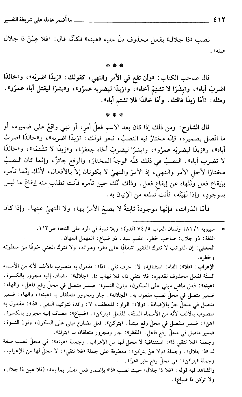 نصب "ذا جلال" بفعل محذوف دلّ عليه "هبنه" فكأنّه قال: "فلا هِبنَ ذا جلال هبنه".