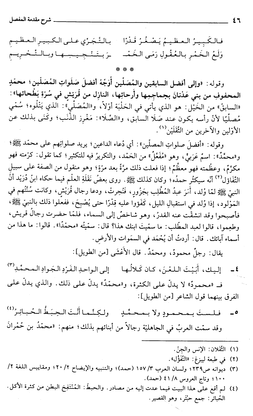 4 - إليك، أَبَيْتَ اللعْنَ، كان كَلالُها ... إلى الواحدِ الفَرْدِ الجَوادِ المحمّدِ (¬3) فـ "محمودٌ" لا يدل على الكثرة، و"محمَّدٌ" يدلّ على ذلك. والذي يدل على الفرق بينهما قول الشاعر [من الطويل]: